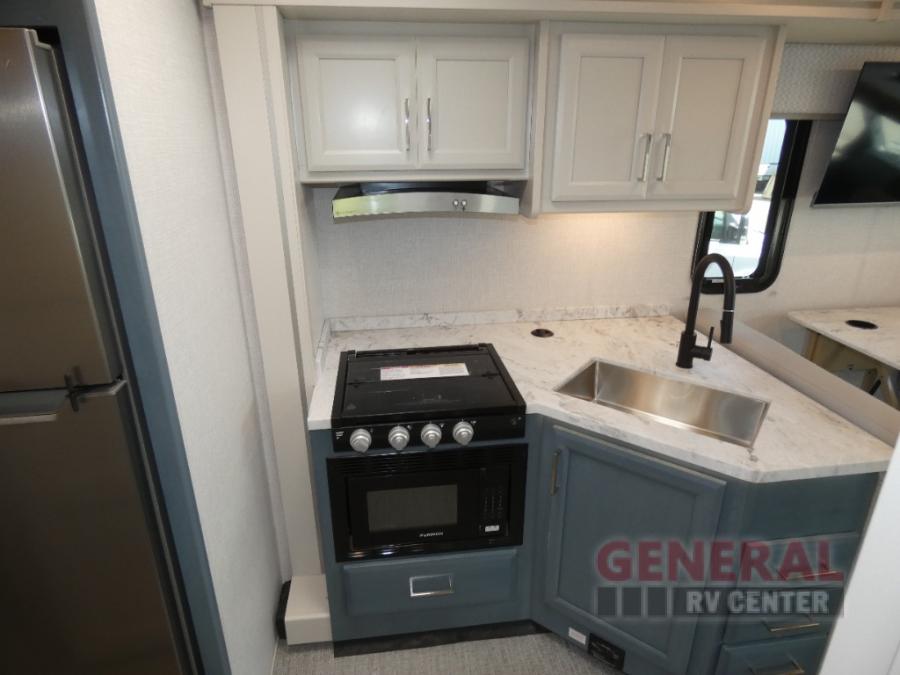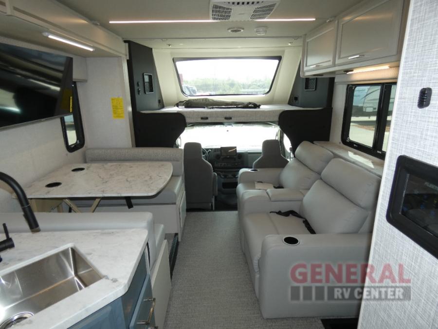With any Altitude Class C gas motorhome by Fleetwood RV, you will enjoy unrivaled performance, unbeatable storage, and luxury at every turn! You will love the journey just as much as the destination with a Ford 7.3L V8 engine and a 6-speed automatic transmission. Each model features a fully encased aerodynamic inspired front bunk cap, tuff-ply thermal polyolefin engineered vinyl composite roofing, and modern exterior vinyl graphics. There are also oversized exterior storage compartments, a premium tankless water heater, and a 1000w upgraded inverter to keep you going. The durable marine grade flooring will stand up over the test of time, and you're going to love the premium galley appliances!