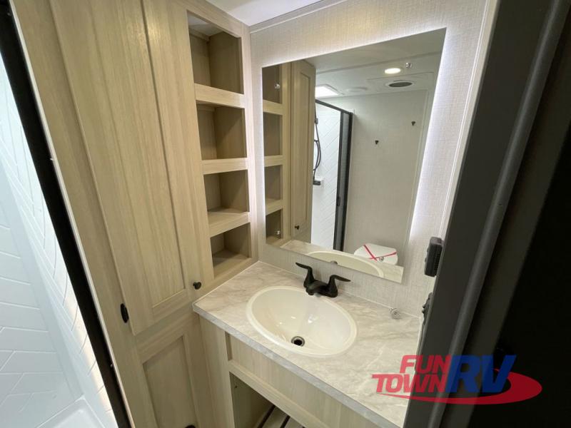 With any Cardinal fifth wheel by Forest River you will enjoy affordable luxury at every turn. These models are constructed with residential fiberglass insulation in the roof and floor, a sectioned ABS plastic underbelly armor, and a vacuum bonded, welded aluminum structure for added strength and durability. You will also find seamless roto-cast holding tanks, an outdoor shower, and 4-point auto leveling for quick and easy setup. There are carpet-free living spaces, residential backsplash, motion lighting throughout, and many more comforts!