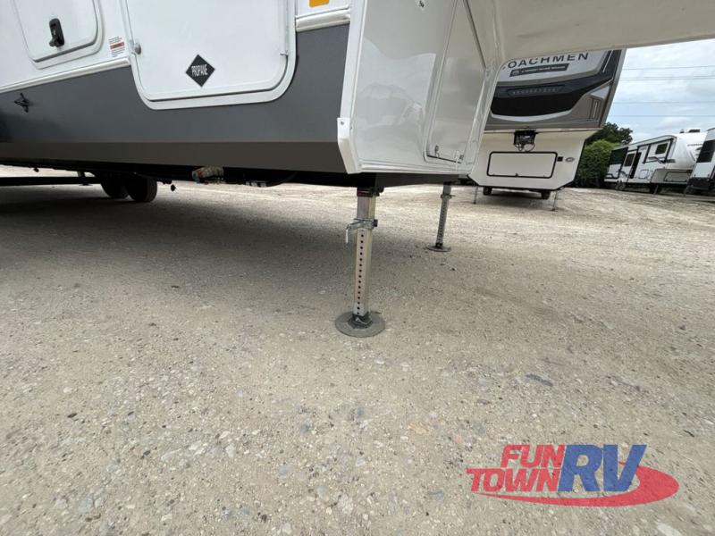 With any Cardinal fifth wheel by Forest River you will enjoy affordable luxury at every turn. These models are constructed with residential fiberglass insulation in the roof and floor, a sectioned ABS plastic underbelly armor, and a vacuum bonded, welded aluminum structure for added strength and durability. You will also find seamless roto-cast holding tanks, an outdoor shower, and 4-point auto leveling for quick and easy setup. There are carpet-free living spaces, residential backsplash, motion lighting throughout, and many more comforts!