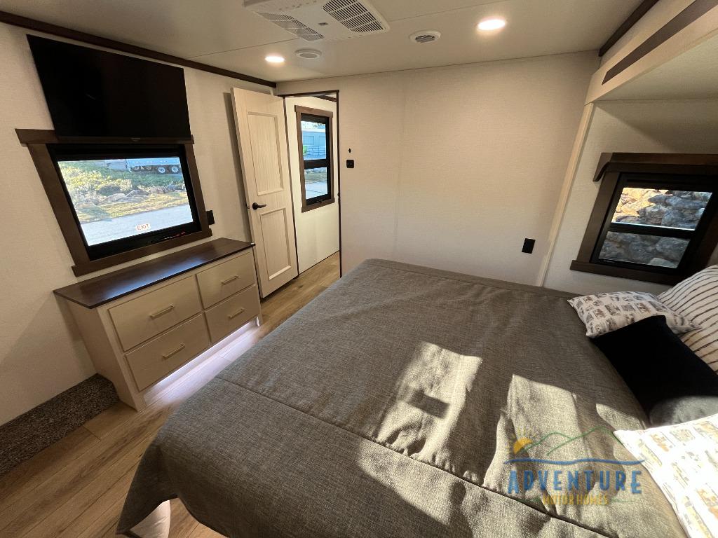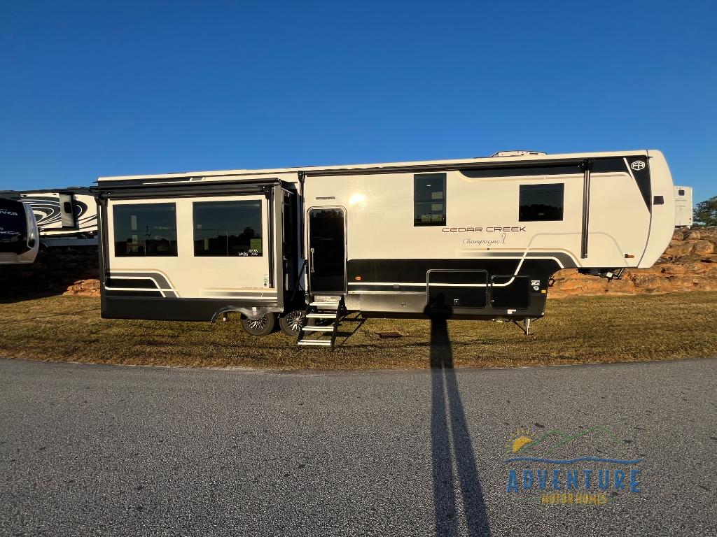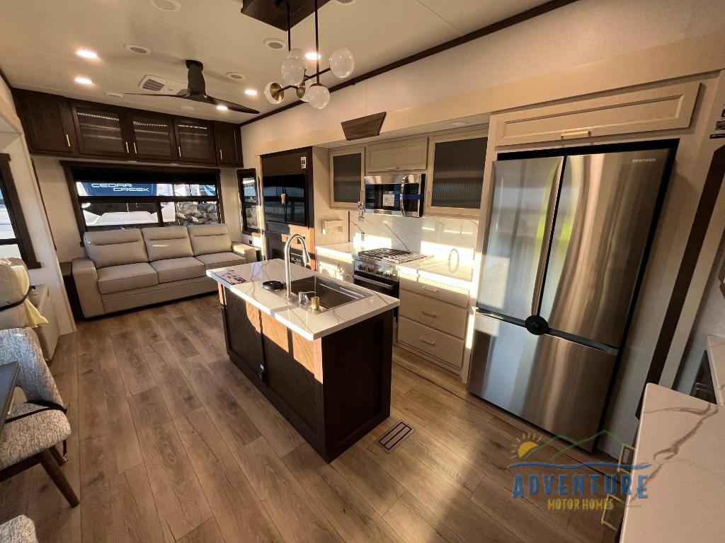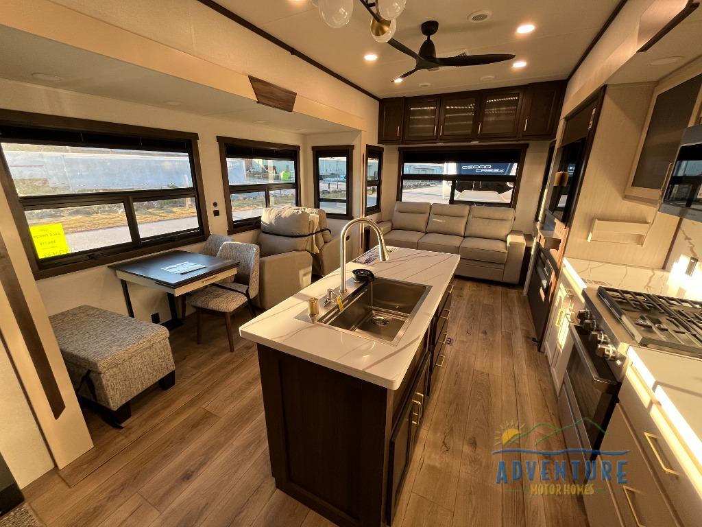 With any Cedar Creek fifth wheel by Forest River, you will find a quality-built RV with your comfort in mind! The all-aluminum super structure on 16" centers or less will provide a solid foundation to your fifth wheel, and the 3M bonded sidewalls will hold up and provide resistance to UV, heat, cold moisture, and even highway chemicals. Each model also includes a Road Warrior suspension for smooth towing, a 6-Point Hydraulic ,GEN 3 Leveling System, and a new 101" wide body frame. Inside, you'll enjoy walnut/two tone wooden cabinetry with hidden hinges, cutting board drawer with cut-out trash funnel, motion lighting in the bath and bedroom closet, plus many more comforts. The New Travelfi™ Pay-as-you go internet provides the ability to bring your own internet rather than relying solely on campground WiFi, and the "Rich Solar" 200W solar panel will give you off-grid capabilities!