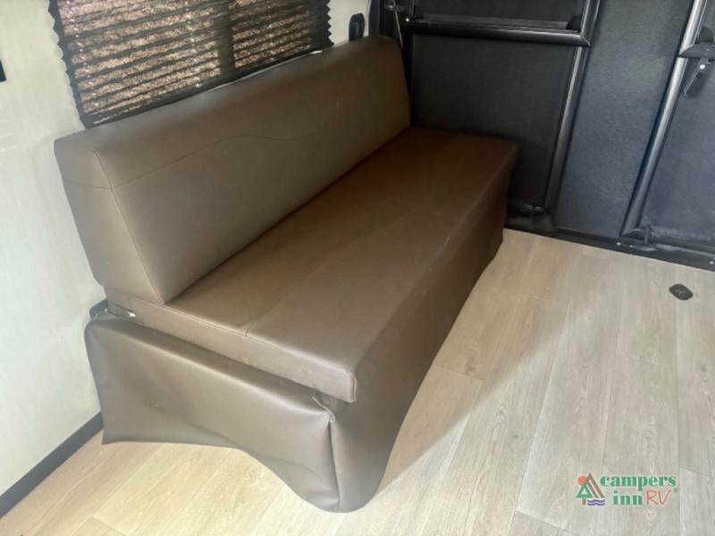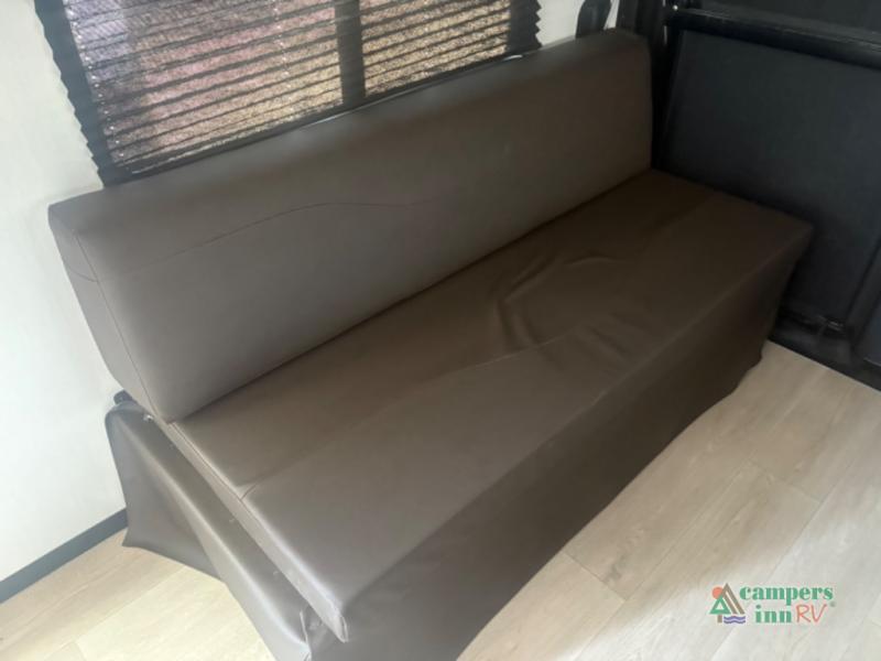 With a wide rear ramp door and flexible garage space, the 18RR makes it easy to bring your gear wherever you roam. The open-concept interior transforms from toy hauler to comfortable living area in minutes, featuring a fold-down sofa, removable table, and a queen bed for restful nights.