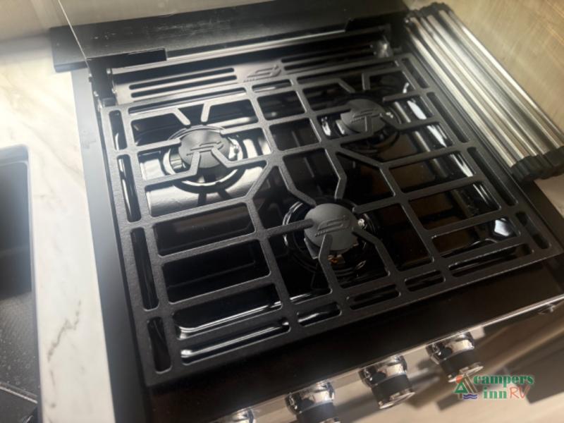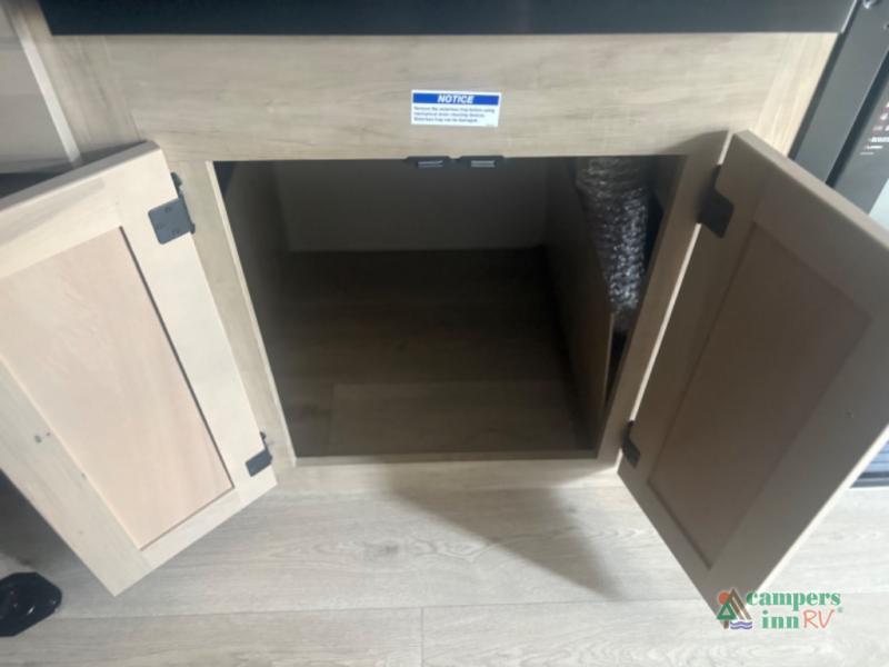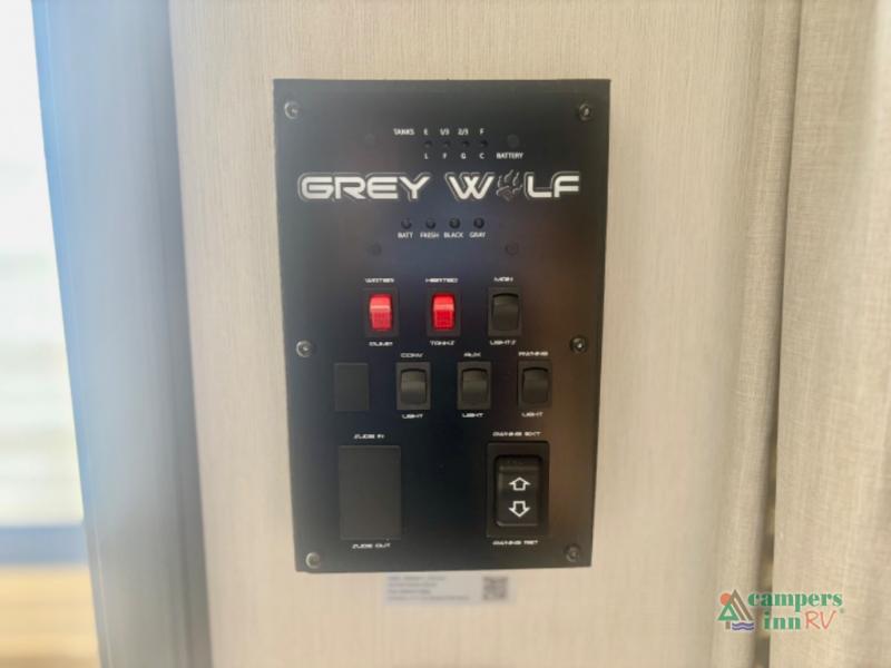 Enjoy a fully equipped kitchen with a two-burner cooktop, microwave, large 12V refrigerator, and deep sink. Stay entertained with pre-wired TV hookups, Bluetooth stereo, and indoor/outdoor speakers. With durable construction, solid-step entry, and lightweight towing, the Grey Wolf 18RR is ready for every destination.