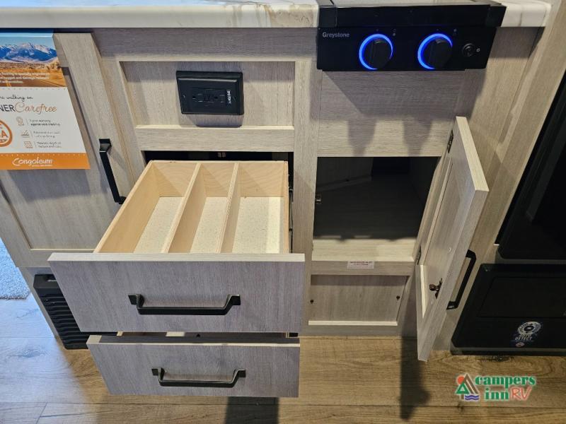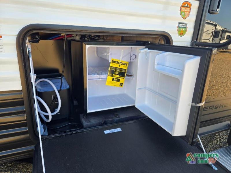 Whether it's a journey that will take you to new locations or a tried-and-true getaway to that favorite and memorable destination, the Forest River Cherokee Grey Wolf travel trailers and toy haulers are going to make the trip worth it every single time! You can travel in confidence with the premium wheel package, seamless roofing membrane with heat reflectivity, Power Gear frame technology with space-saver rail design, and Cherokee back-up camera system. The Cherokee Grey Wolf's interior is highly attractive with its stainless steel kitchen suite package and premium bedding ensemble and comforter. You will also find a black waste tank flush-out kit, an outside shower with hot and cold water, an armored underbelly tank enclosure, and an RV grill quick connect.