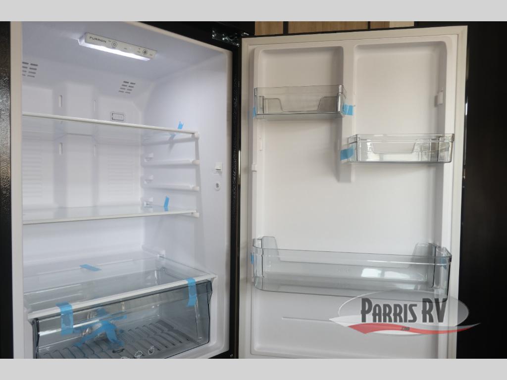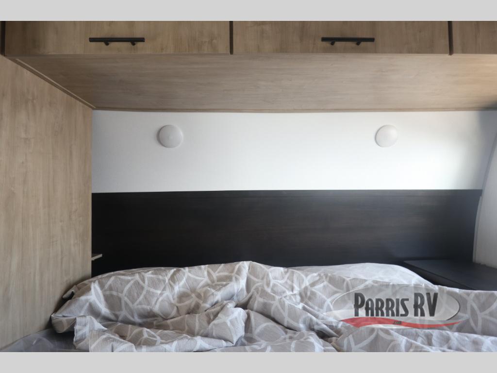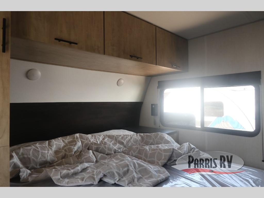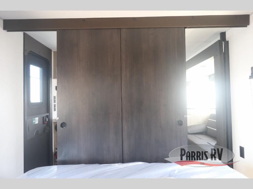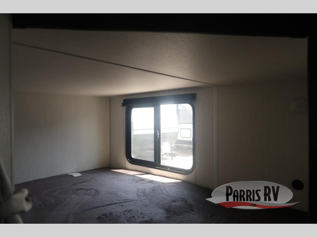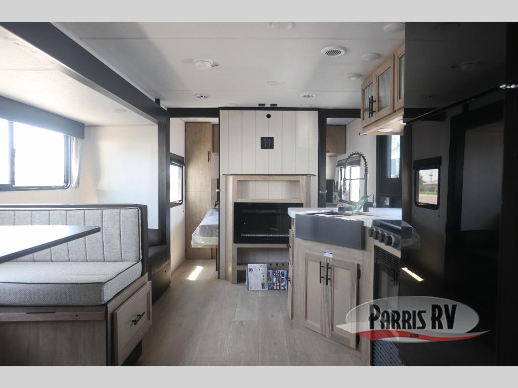 Come on inside this Cherokee Grey Wolf travel trailer and experience the convenience of a smooth flow of traffic in and out with two entry doors. The rear door leads into a full bath which is great for accessibility. Once inside, you will notice the large U-shaped dinette and the sofa which sit on the slide and create a spacious footprint for moving about, as well as great places to play games and socialize with your friends and family. A walk-in pantry provides plenty of storage allowing you to stock up on your favorite snacks and dry goods for your family adventure. At night, there is sleeping space for everyone between the double-size bunks and the RV king bed, plus the furniture.