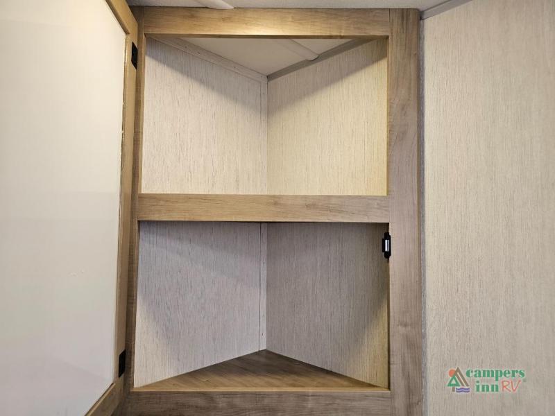 Walk-in pantry for storing snacks, dry goods, and camping essentials.