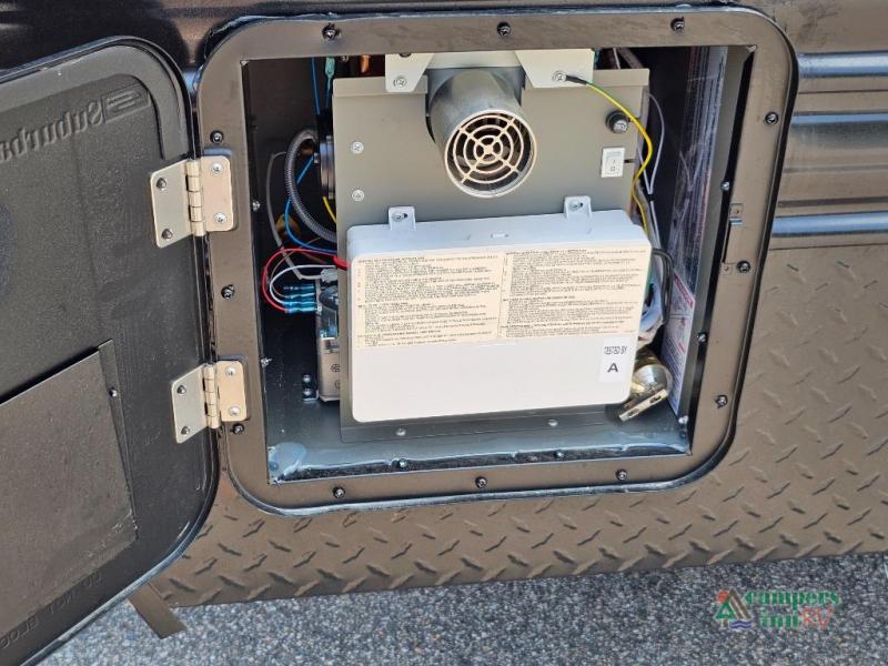 Armored underbelly tank enclosure for protection in various weather conditions.
