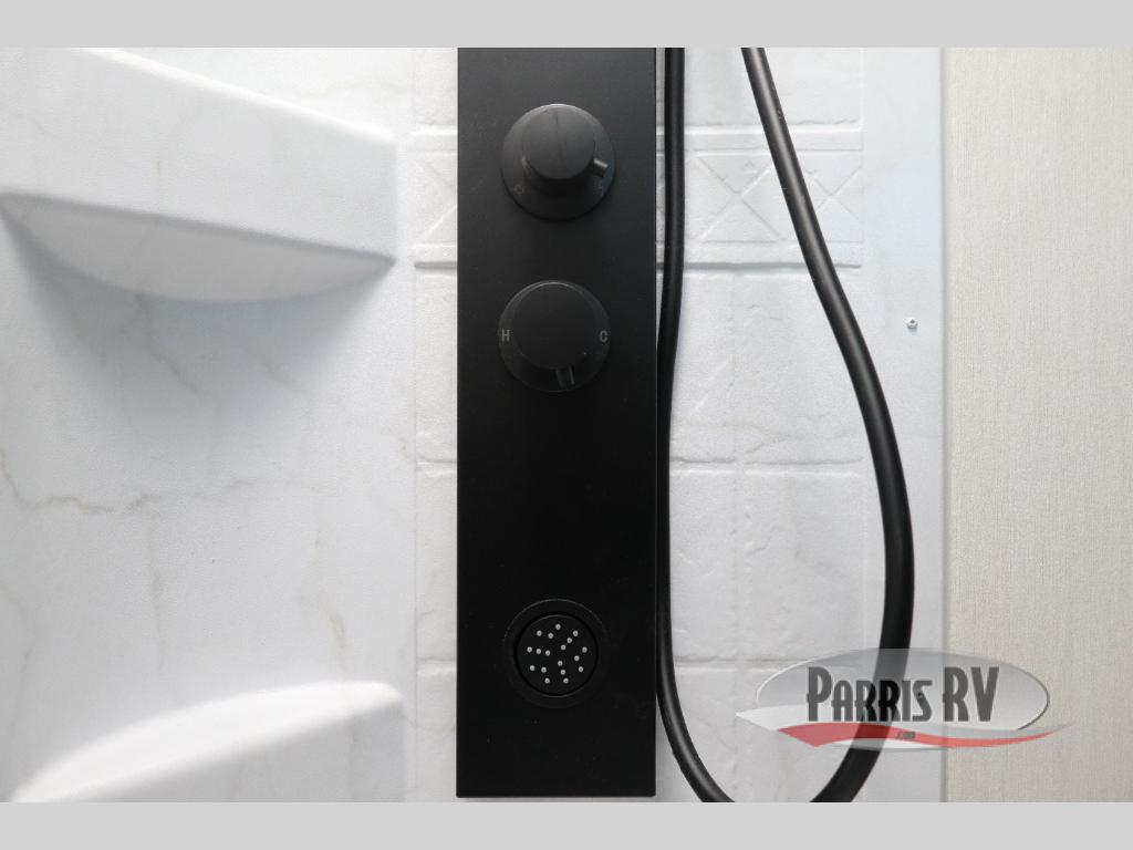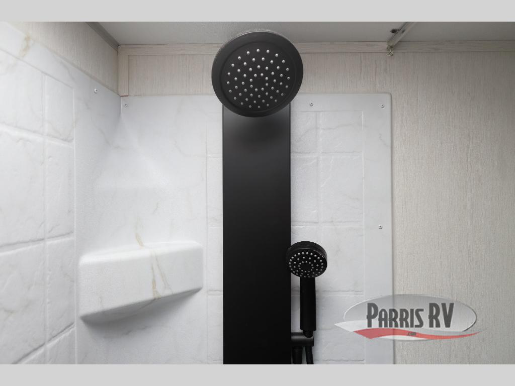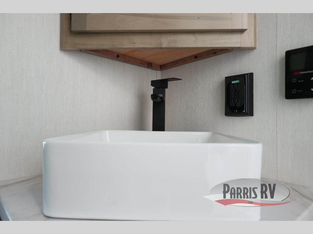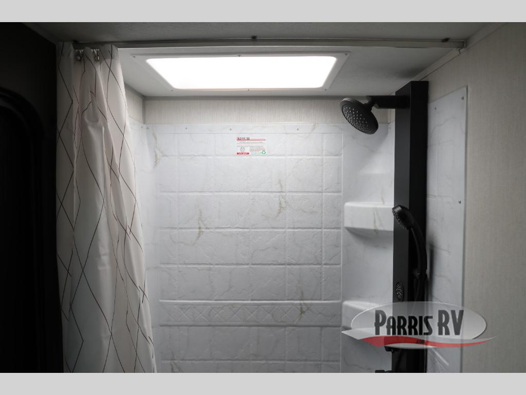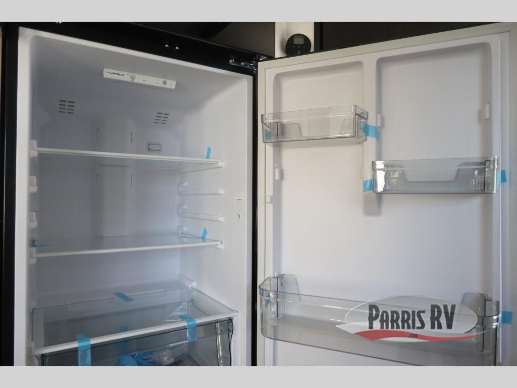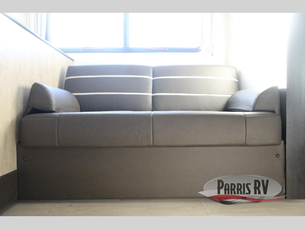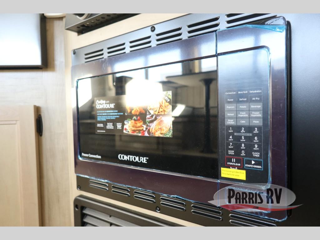 If you've been searching for a travel trailer with a larger sleeping capacity to camp with friends, this is the one! There are double-size bunks in the rear corner, and the full bath with its own exterior entry door is in the other rear corner for easy nighttime use. Up front, an RV king bed in the private bedroom is sure to bring a great night's rest, and you'll find a bedside wardrobe to keep your clothes picked up off of the floor. In the morning, everyone can meet in the main living room that includes a large slide out, U-shaped dinette, sofa, and a fireplace with a hidden pantry behind it for smart storage solutions. An outside kitchen will allow you to get some fresh air as you make dinner, but there's also a full interior kitchen if the weather isn't cooperating. Additional outdoor features include a rear storage rack, an outside TV mount, and a 15' awning for some shade!