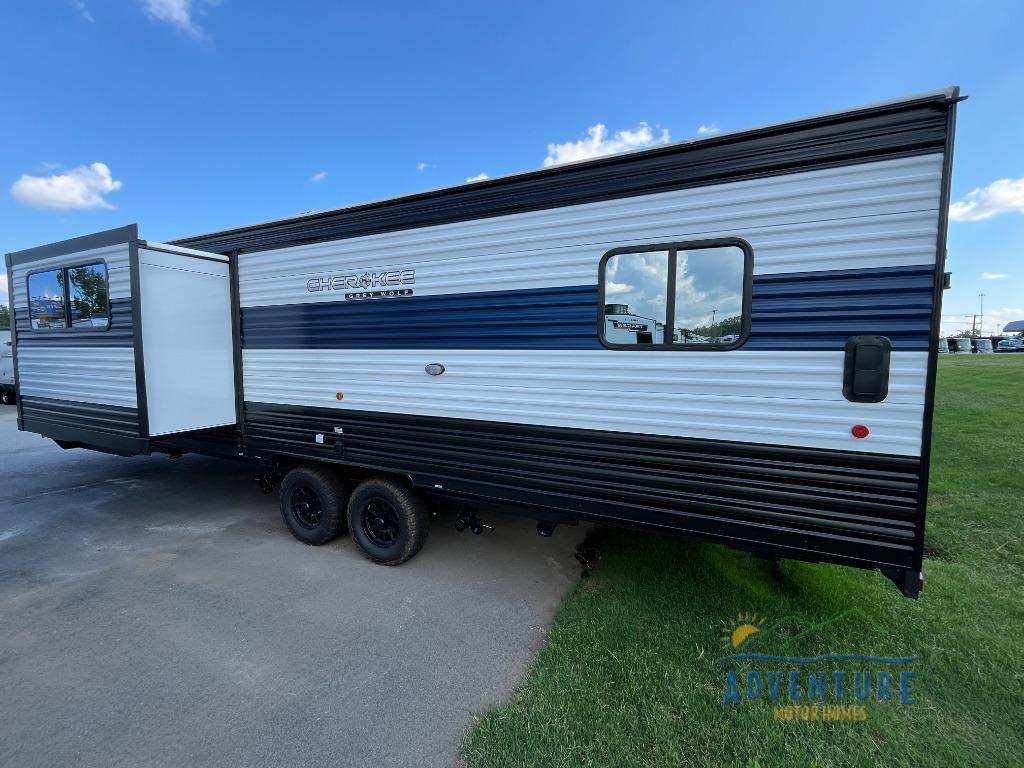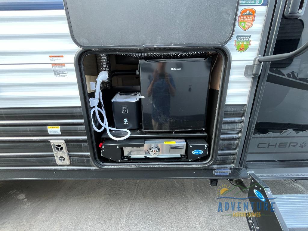 Whether it's a journey that will take you to new locations or a tried-and-true getaway to that favorite and memorable destination, the Forest River Cherokee Grey Wolf travel trailers and toy haulers are going to make the trip worth it every single time! You can travel in confidence with the premium wheel package, seamless roofing membrane with heat reflectivity, Power Gear frame technology with space-saver rail design, and Cherokee back-up camera system. The Cherokee Grey Wolf's interior is highly attractive with its stainless steel kitchen suite package and premium bedding ensemble and comforter. You will also find a black waste tank flush-out kit, an outside shower with hot and cold water, an armored underbelly tank enclosure, and an RV grill quick connect.