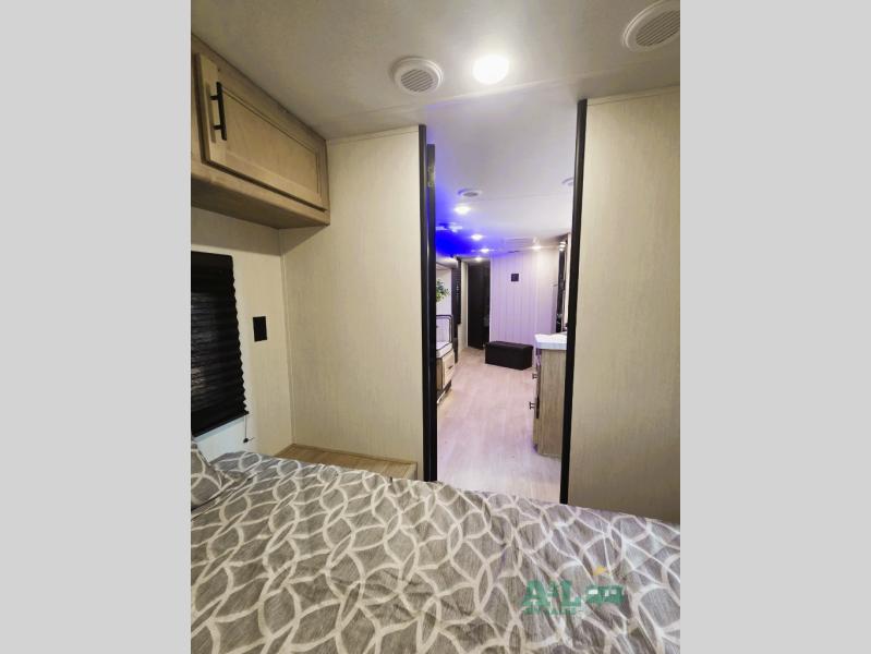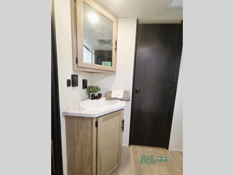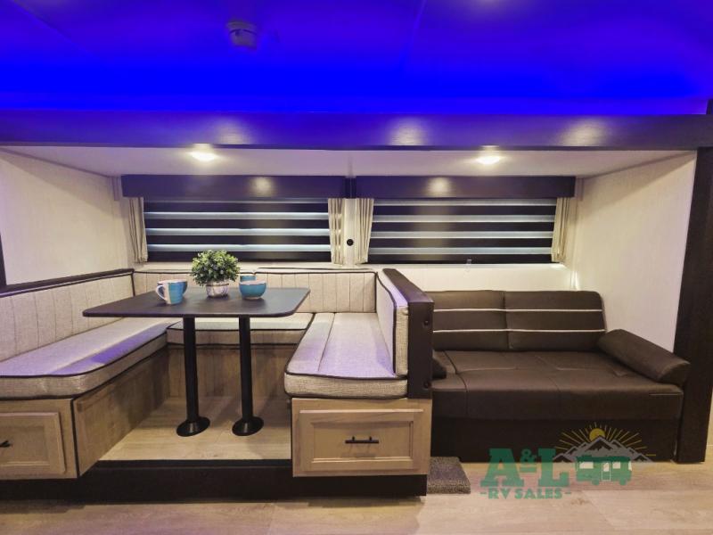 You will have such a great time making memories in this Cherokee Grey Wolf travel trailer! This amazing trailer not only has a master suite up front, but it also has another private bedroom in the back which means that both you and the rest of your fellow campers will sleep peacefully and privately. There is also a U-shaped dinette and sofa on the large slide in the main living area so that if you have anyone else traveling with you, they can also have a place to sleep. A full kitchen, complete with an air fryer will help you whip up a hearty meal to replenish your tired bodies, and a pantry will hold onto your snacks and sweets for later.