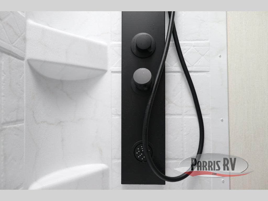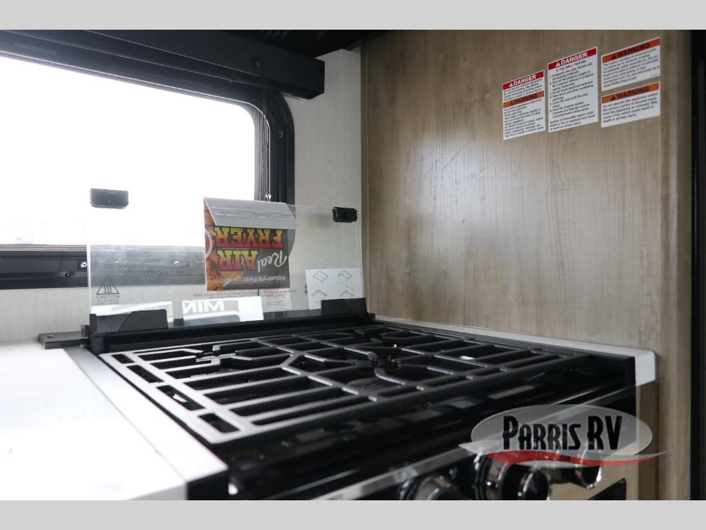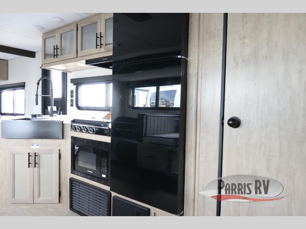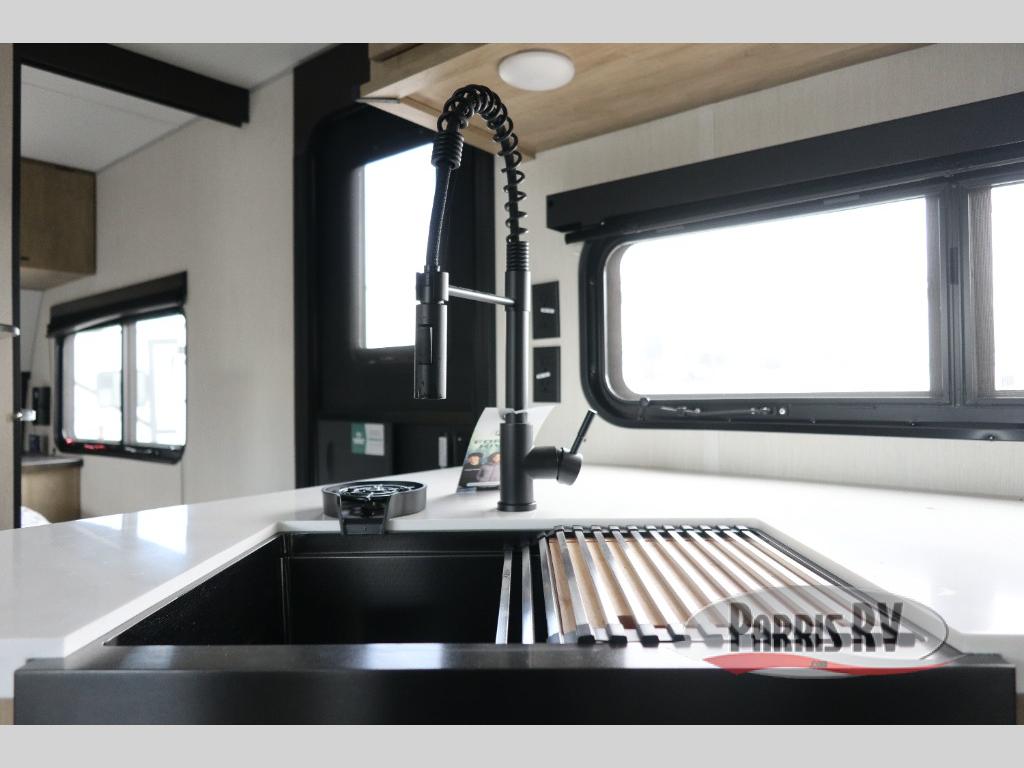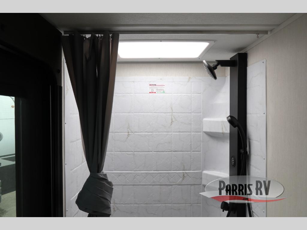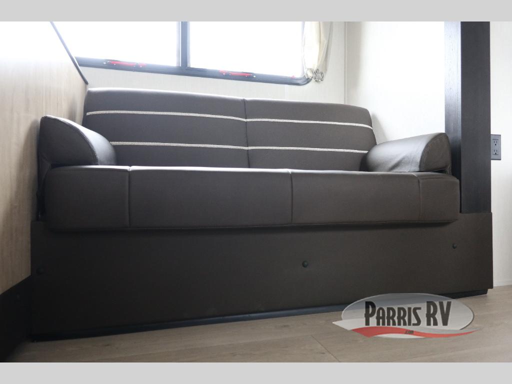 Come on inside this Cherokee Grey Wolf Black Label travel trailer and experience the convenience of a smooth flow of traffic in and out with two entry doors. The rear door leads into a full bath which is great for accessibility when outside and when you need to use the bathroom. Once inside, you will notice the large U-shaped dinette and the sofa which sit on the slide and create a spacious footprint for moving about, as well as great places to play games and socialize with your friends and family. A large pantry provides plenty of storage allowing you to stock up on your favorite snacks and dry goods for your family adventure. At night, there is sleeping space for everyone between the double-size bunks and the RV king bed, plus the furniture.