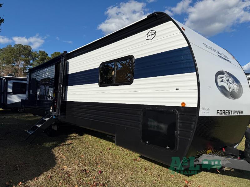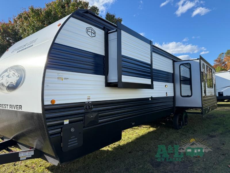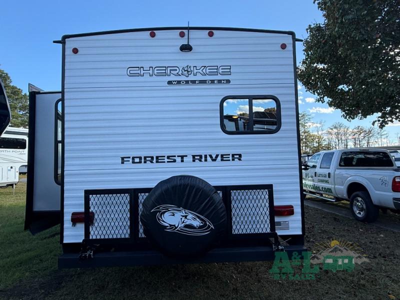 If the open road is calling your name, then answer it with one of these Forest River Cherokee Wolf Den travel trailers! You'll find better comfort, style and value in these trailers, giving you more freedom to enjoy the camping lifestyle. Like with all Forest River products, the Wolf Den features durable construction materials and convenient amenities, such as outdoor storage and battery disconnect. With at least one slide in each model, you'll enjoy open living spaces, along with full bath and kitchen amenities, and comfortable sleeping arrangements.