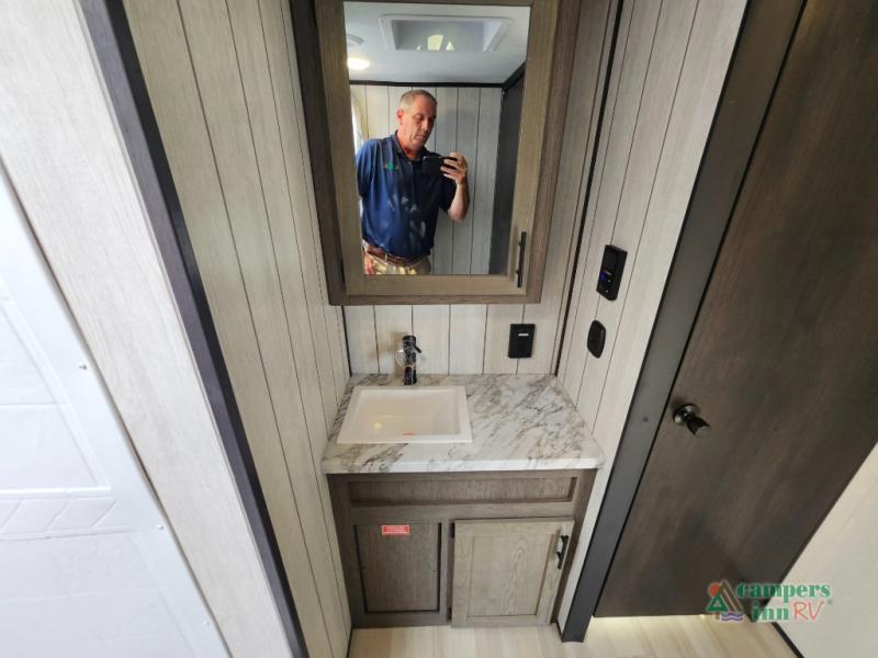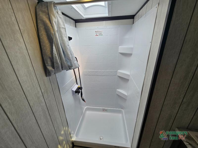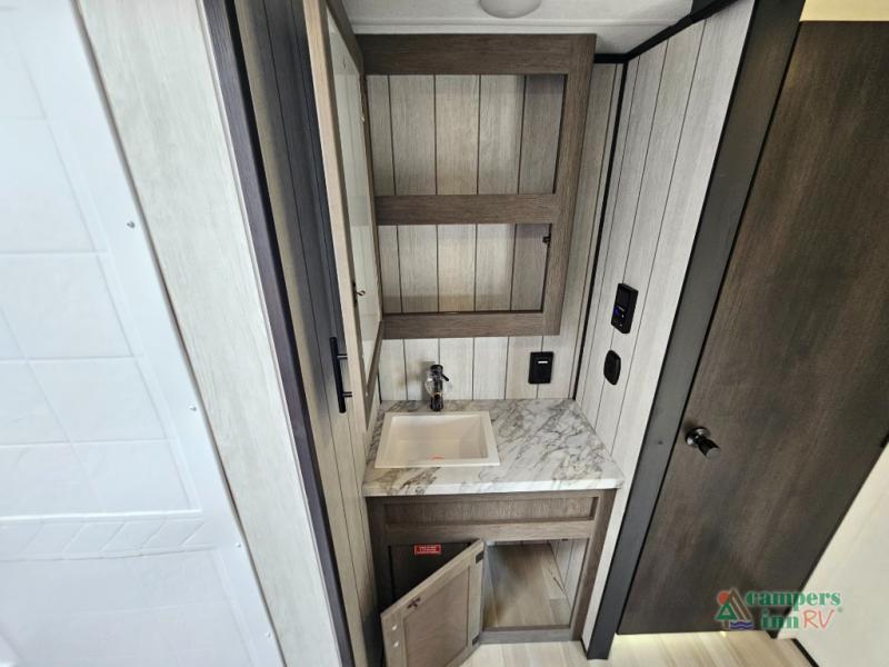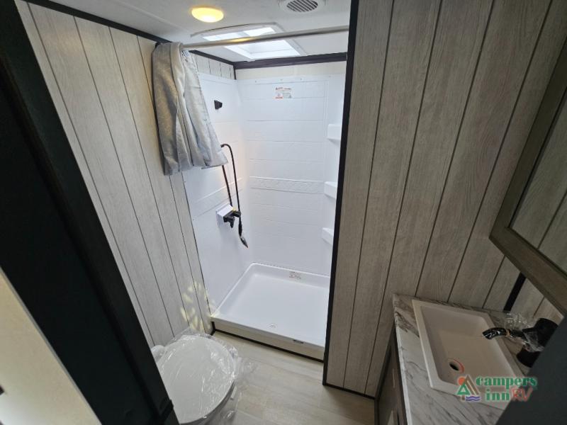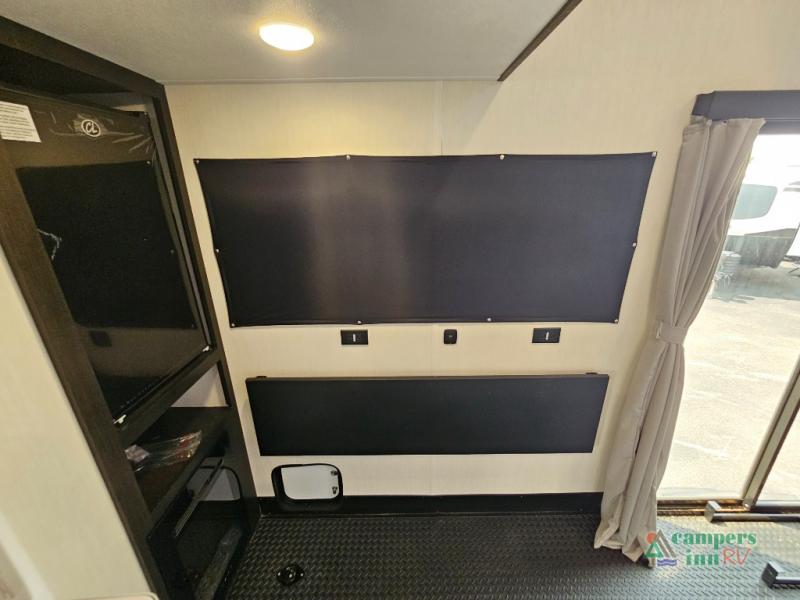 With any Cherokee Wolf Pack toy hauler by Forest River, you will enjoy never-ending adventures. You'll appreciate the 8' 6" wide body design so you can bring along toys and gear, and there is a high-output LED loading light for added convenience when you're getting back to camp late. There is real wood cabinet doors and drawers inside and LED lights to keep your space well lit. These toy haulers are built with tongue and groove plywood main floors and a forced air heated underbelly and enclosed holding tanks that will help you extend your camping season.