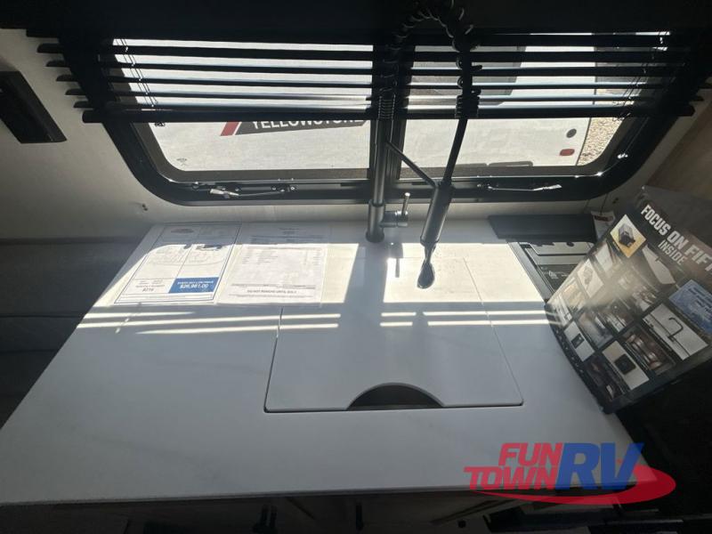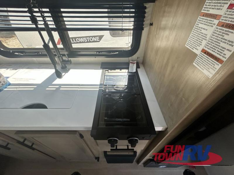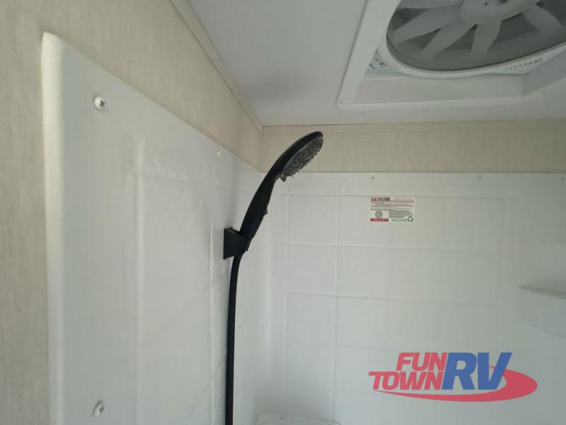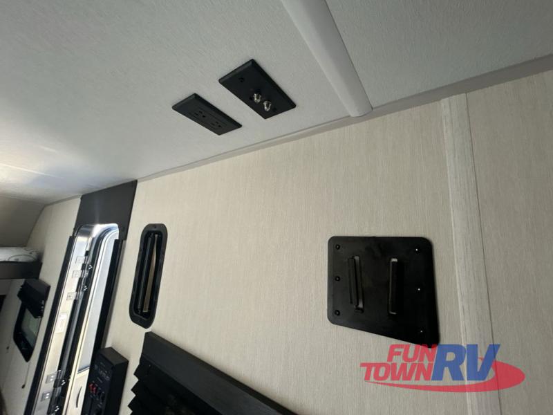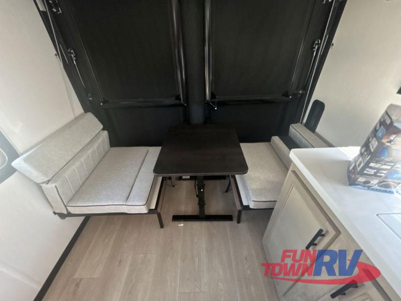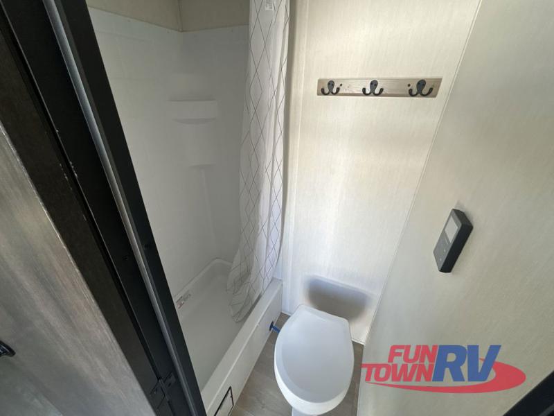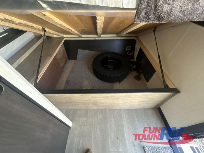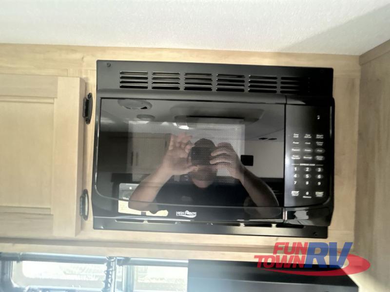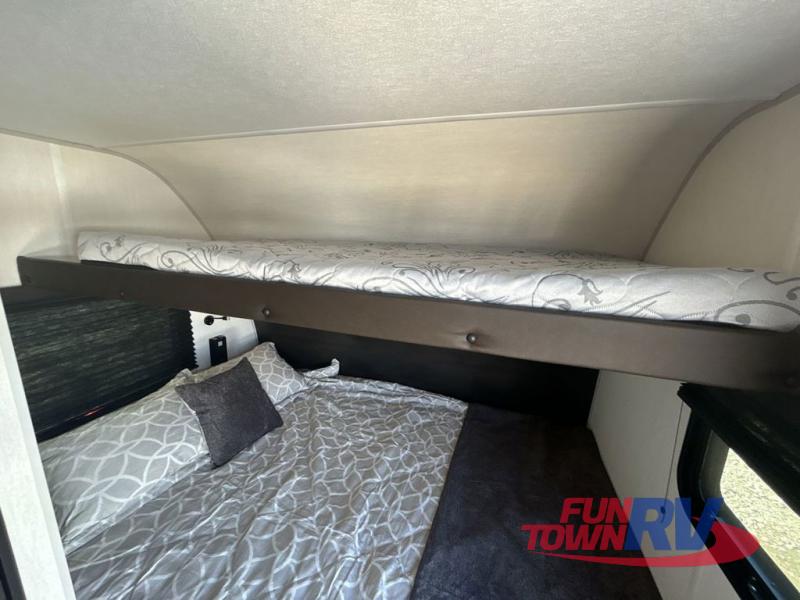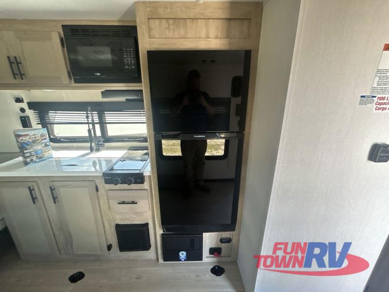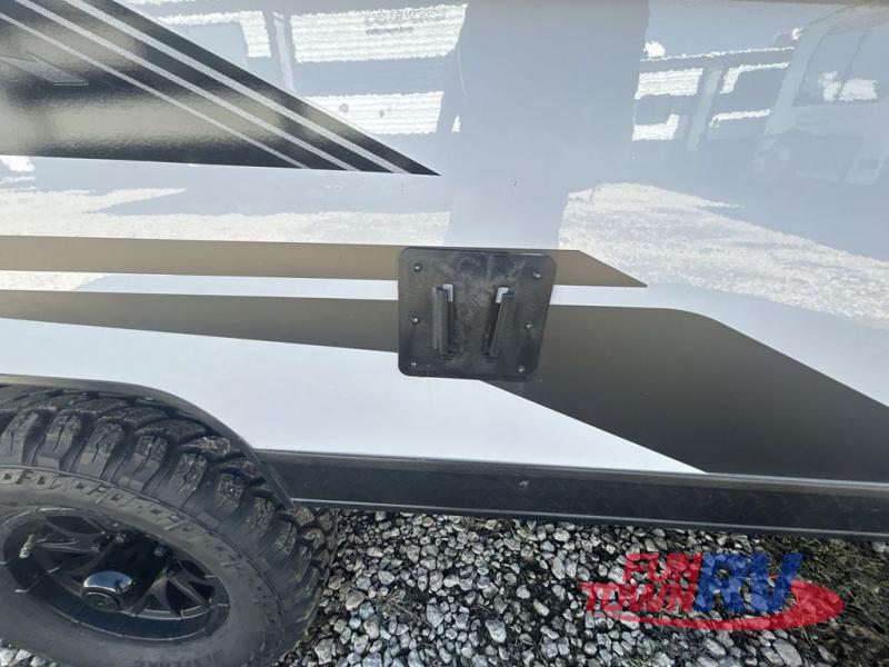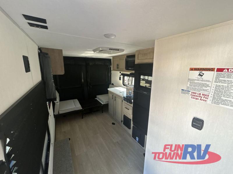 Load up your favorite off-road toys with the ramp door into the 9' 4" garage with 13' 11" total cargo space when you utilize the space up front! Enjoy all of the at home features like a fully equipped kitchen with a cooktop, refrigerator, and a microwave. Comfortably eat your delicious meals at the rear dinette with a removable table for convenience. The private bathroom has a tub/shower for you to freshen up in the morning after getting a good night's rest on the front queen bed which also has a bunk bed above it too. There is also outside storage for your hiking or riding gear!