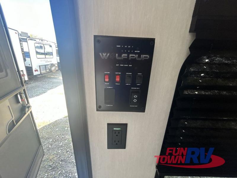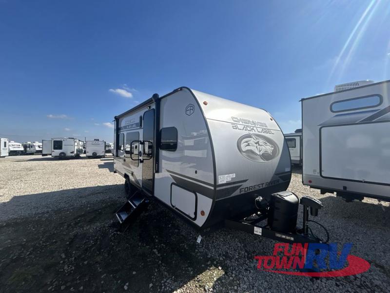 Each one of these Forest River Cherokee Wolf Pup Black Label travel trailers and toy hauler are lightweight and easy to tow! They are fully self-contained with ample tank capacities, an abundance of storage space, and filled with at home amenities. The full bath and kitchen amenities will make life at the campground easier than ever, and the outdoor patio awning will provide an inviting outdoor space. And you're sure to enjoy the Black Label upgrade with fiberglass gel coated side walls, frameless windows, upgraded solid surface countertops, and more stand-out features!