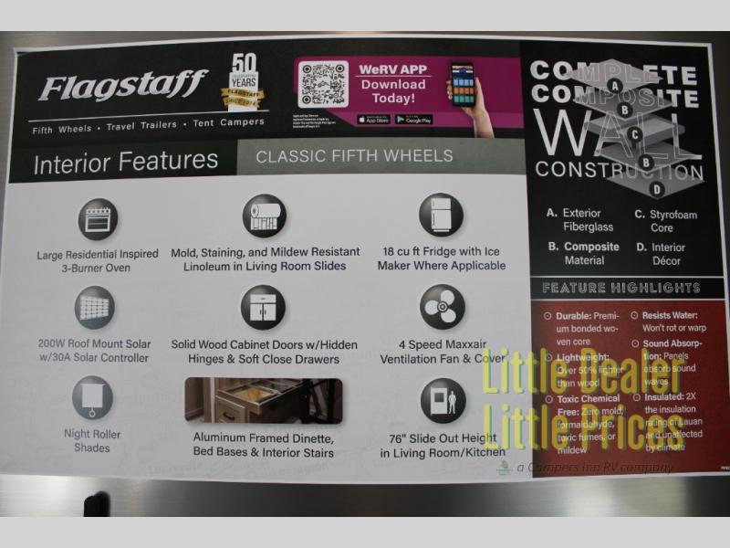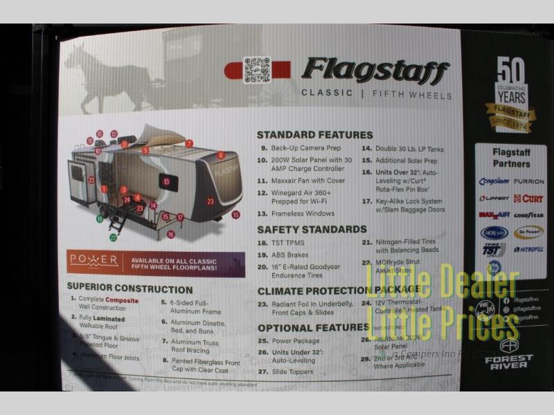 Where modern luxury meets rugged freedom—this Flagstaff Classic 281RK fifth wheel is built for campers who love the journey just as much as the destination. Whether you’re waking up to a mountain sunrise or setting up camp lakeside, this RV delivers comfort, space, and adventure-ready features wrapped in Forest River’s legendary build quality.