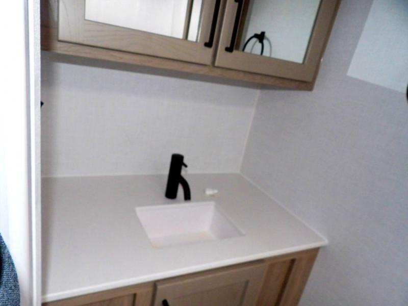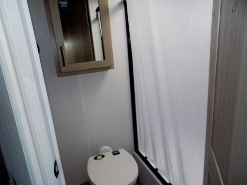 Get ready for a spacious and comfortable trip in this trailer, plus you will have a convenient rear full bathroom with an oversized shower and linen storage to utilize instead of using the campground's facilities. The walk-around full bed gives you two sides with wardrobes to claim as your own. And the kitchen offers full amenities to make meals. You can relax, dine, or even work from the slide out sofa with a 30" x 15" table and watch the TV. You will find storage along the exterior for your outdoor gear, plus a 14' power awning.