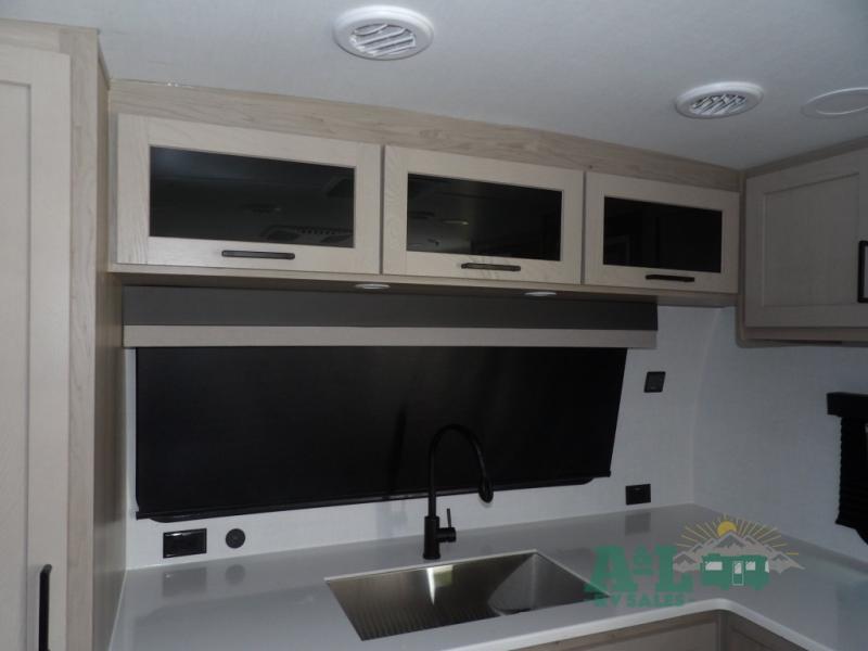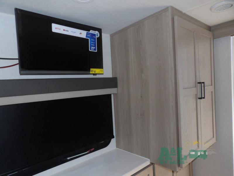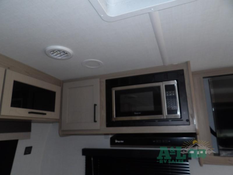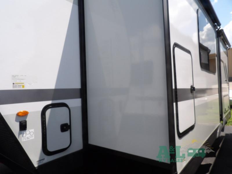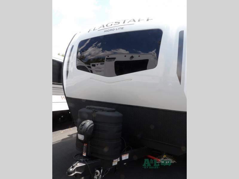 With any Flagstaff Micro Lite travel trailer by Forest River you will enjoy lightweight towing, durable construction, and added interior comforts to make each trip memorable! Each model features RoadTech tire pressure monitoring, Dexter Torflex axles, and nitrogen-filled Goodyear endurance tires for smooth towing from home to campground. The 6-sided aluminum framed construction provides a strong foundation so you can enjoy your RV for years to come, plus the radiant foil in the front cap, underbelly and slides help insulate your trailer. Additional exterior features include a 200W solar panel, back-up camera prep, frameless windows, and slam baggage doors. Each model includes the Great Expectations Package with roller shades, solid surface kitchen countertops, and hidden hinge cabinet doors. There is also an exterior hot/cold water port, outside speakers, a power tongue jack and stabilizer jacks, plus many more conveniences.