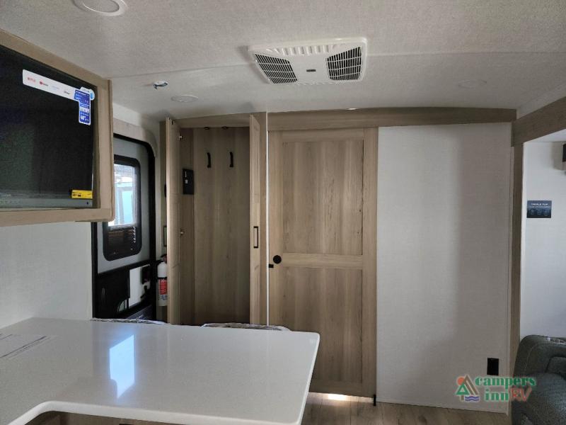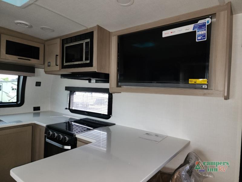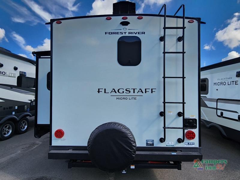 With any Flagstaff Micro Lite travel trailer by Forest River you will enjoy lightweight towing, durable construction, and added interior comforts to make each trip memorable! Each model features RoadTech tire pressure monitoring, Dexter Torflex axles, and nitrogen-filled Goodyear endurance tires for smooth towing from home to campground. The 6-sided aluminum framed construction provides a strong foundation so you can enjoy your RV for years to come, plus the radiant foil in the front cap, underbelly and slides help insulate your trailer. Additional exterior features include a 200W solar panel, back-up camera prep, frameless windows, and slam baggage doors. Each model includes the Great Expectations Package with roller shades, solid surface kitchen countertops, and hidden hinge cabinet doors. There is also an exterior hot/cold water port, outside speakers, a power tongue jack and stabilizer jacks, plus many more conveniences.