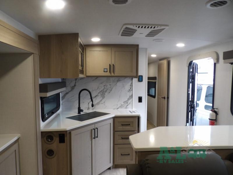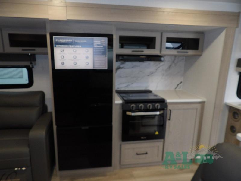 With any Flagstaff Super Lite travel trailer by Forest River, you can enjoy quality features with lightweight towing! The Climate Protection Package includes radiant foil in the front cap, underbelly, and slides, plus there are 12V thermostat-controlled heated tanks for added protection. The complete composite wall construction and 6-sided full-aluminum frame is ultra durable, and the RoadTech tire pressure monitoring adds safety. Each model also includes the Coast to Coast Package that comes with slam latch baggage doors, a high gloss fiberglass cap, Goodyear Endurance tires, plus a 200W solar panel with an optional additional 200W panel for more off grid capabilities. Inside, you'll love the roller shades, solid surface kitchen countertops, a shower miser system, and many more comforts!
