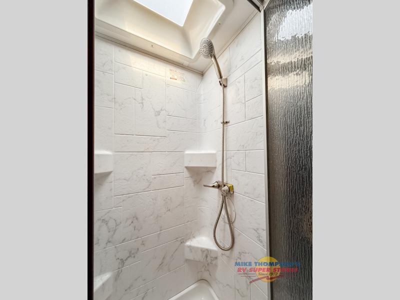 With any Forester Classic Class C gas motorhome by Forest River you will enjoy comfort at every turn! They offer a smooth ride with the EZ Ryde premium suspension system, and the ultra leather captain's seats will ensure comfort wherever you go. There are heated, enclosed holding tanks and valves plus block foam insulation to enjoy four-seasons camping, and the gel coat exterior fiberglass is slick and easy to keep clean. A keyless entry comes standard for your convenience, along with a color back-up camera and side view cameras with a 3-way monitor for added safety when parking. The Forester Classic motorhomes also include a Maxx Air multi-speed power fan with a cover, a shower skylight, a cordless 12V charging plate, plus black out roller shades for privacy any time.