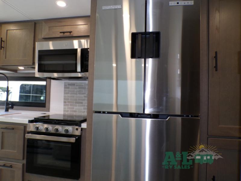 With any FR3 Plus Class A gas motorhome by Forest River, you will find a step up from the FR3, including a modern slick exterior with full-body paint options! Since this coach includes vacuum bonded construction, you can enjoy traveling for years to come, and the full fiberglass front cap provides added protection. Each drive is made comfortable by the two-tone ultra leather captain's seats, plus there is a Sony 10.1" dash radio that includes a color back-up monitor and more to make the journey that much smoother! You will stay powered up by the 6.0kW NPS Yamaha generator, 200W solar panels with a Go Power solar controller, (2) 100 Amp Battle Born lithium batteries, and more. The interior of the FR3 Plus includes solid surface kitchen countertops, IVC residential vinyl flooring, stainless steel kitchen features, and many more comforts!