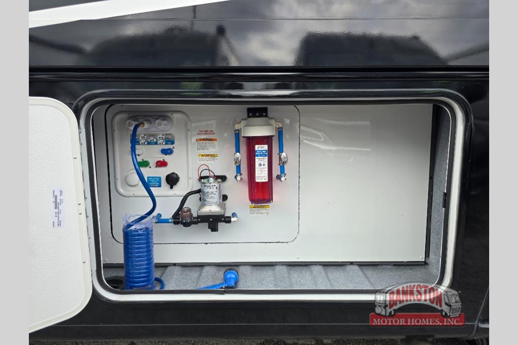 A spacious design and true luxury come together to create these Forest River Georgetown 5 Series Class A gas motorhomes! Their solid surface kitchen countertops, day and night shades throughout, and designer bedspread will have you feeling right at home. The color side and rear cameras help to prevent any dings or bumps while you travel, and the automatic hydraulic leveling jacks will keep your unit leveled where ever you set up. Durable construction consists of a crowned roof, 2" aluminum framed vacuum bonded gel coated sidewalls, plus high density block foam insulation that will allow you to travel in all seasons. You will appreciate the 50 Amp service, two house batteries, and 6,000 watt Yamaha generator to keep you powered up. An outside shower is also included on all models, along with rotocast storage compartments with drains, a power awning, and so much more!