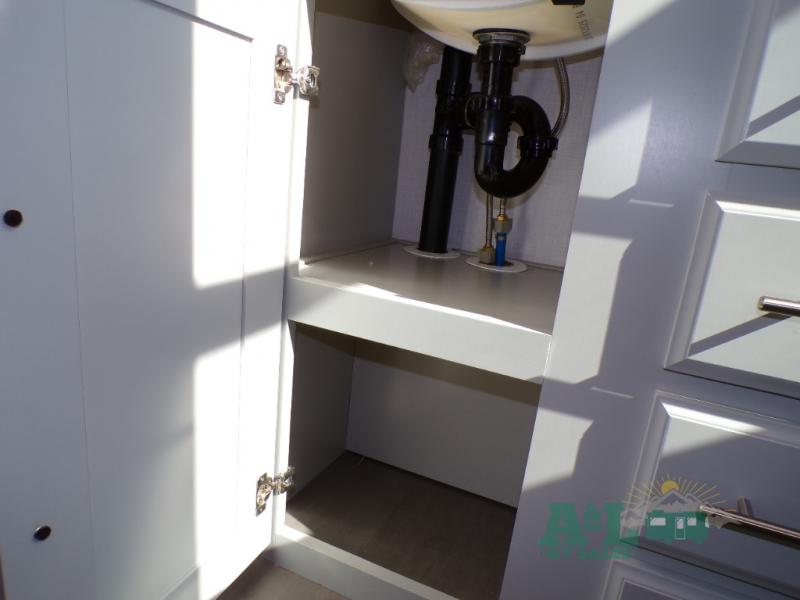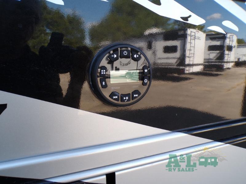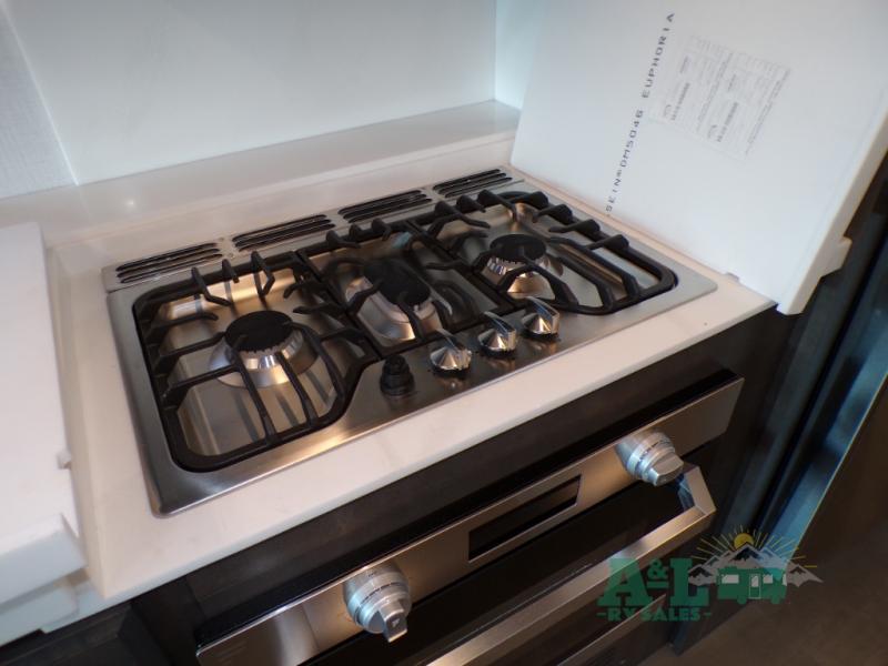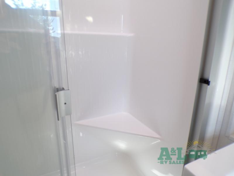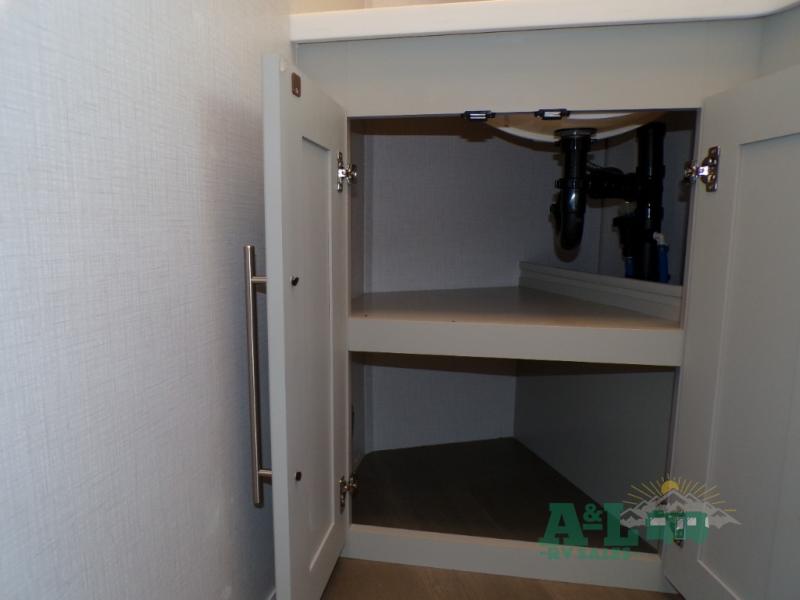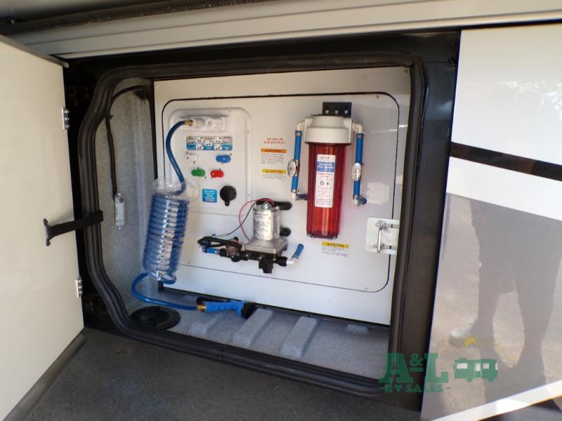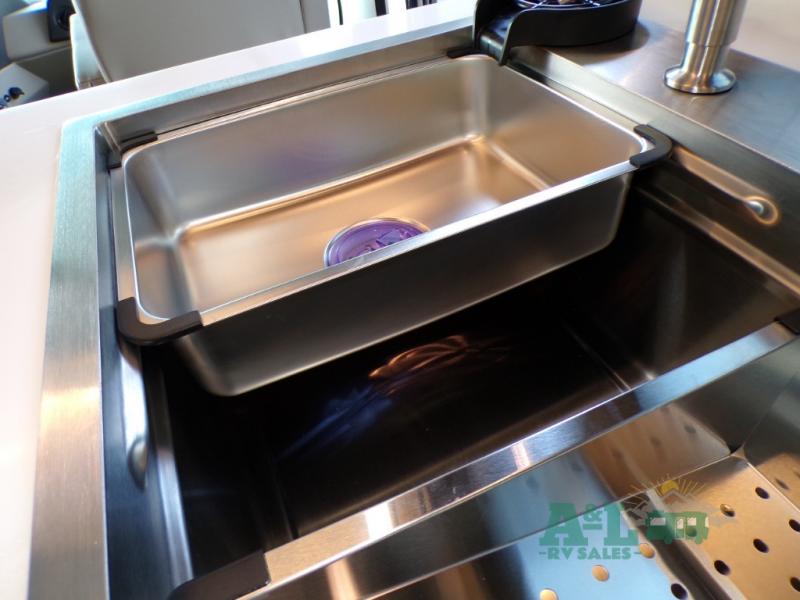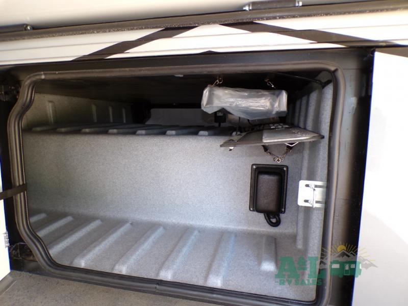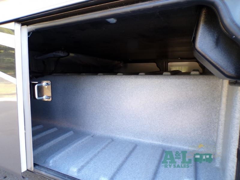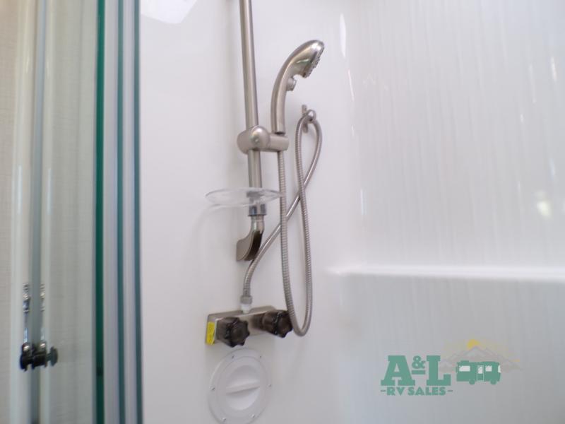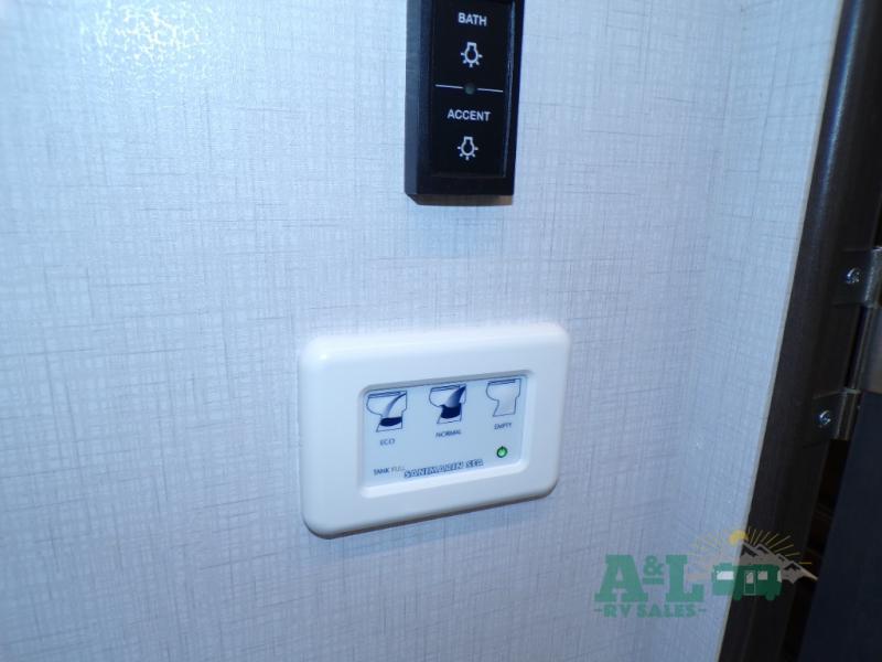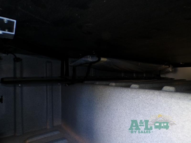 Comfort and convenience are found all throughout this motorhome! Starting with the full rear master bath that has a shower with a seat and a dual sink vanity, plus it leads into the private bedroom. Inside the bedroom is a 72" x 80" king bed slide with overhead cabinets across from a dresser with overhead cabinets and a 32" LED TV, a wardrobe, and another wardrobe that is prepped to add an optional stackable washer and dryer. The half bathroom is conveniently near the fully equipped kitchen so you can get back to creating your best home cooked meals fast. Relax in true comfort each night by either playing games at the booth dinette or on the theater seating that comes with power recline, heat, and massage!