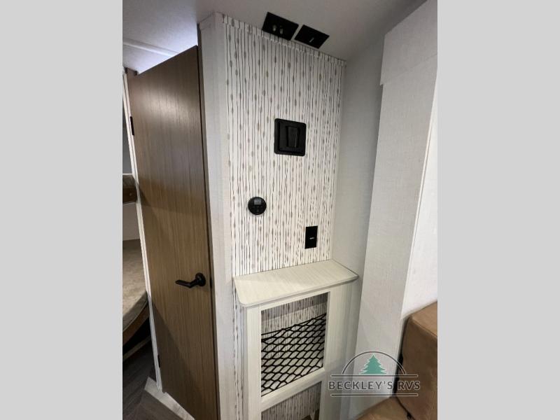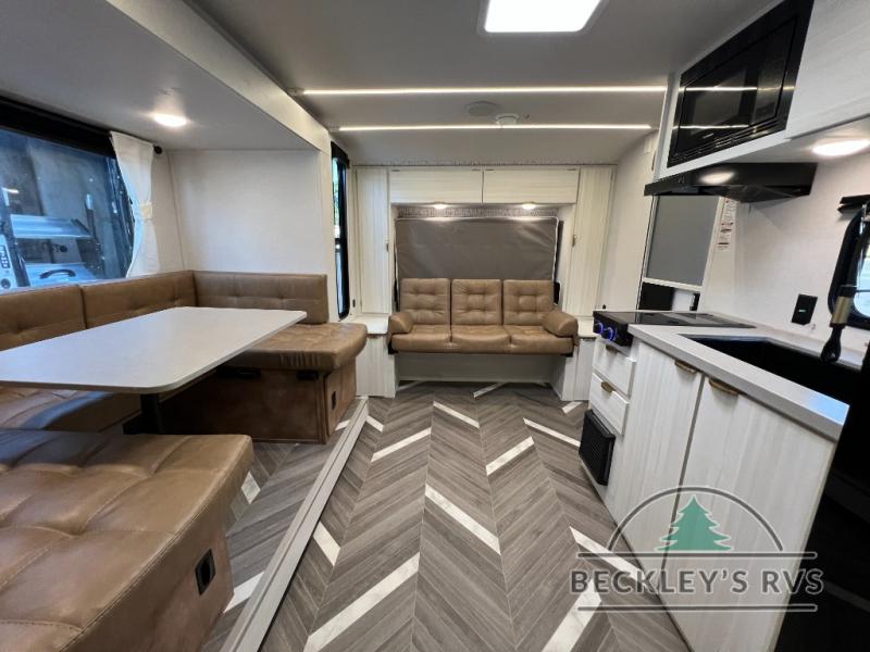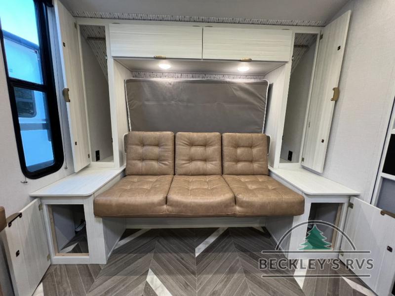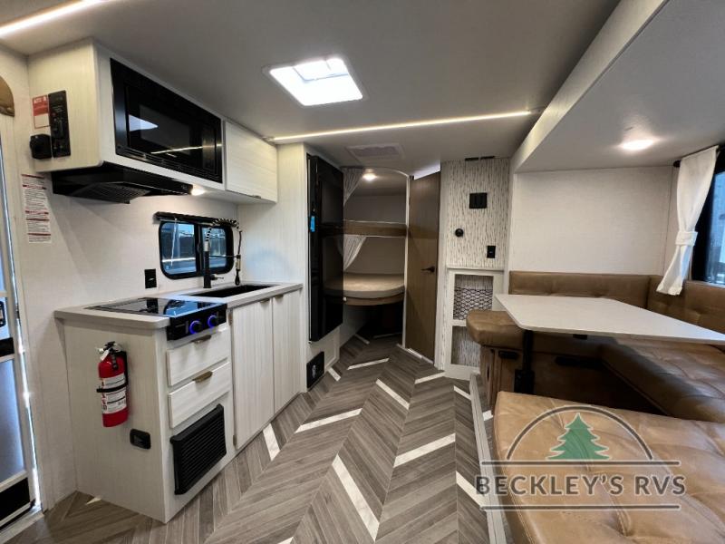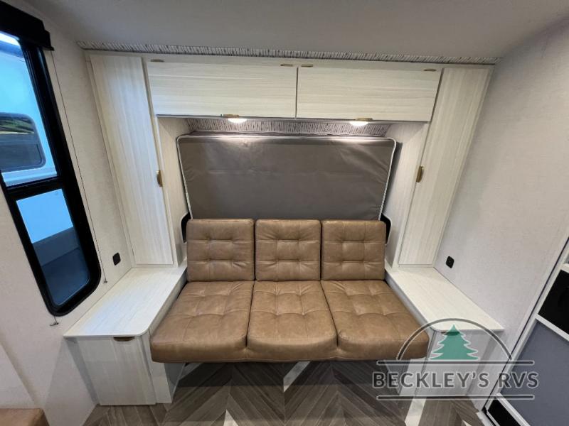 You can create the perfect oasis with this Ozark travel trailer! The exterior is outfitted with a 14' power awning to protect you from the hot summer sun and rain. On the interior, there is extra roominess thanks to the single slide. This slide holds the U-shaped dinette/booth dinette combo where you can dine at. The Murphy bed is especially useful when you are trying to be frugal with your space because it can fold away to reveal a sofa during the day allowing more space to move about. The double-size bunks provide plenty of sleeping space, and the panoramic window and lets the sunshine in.