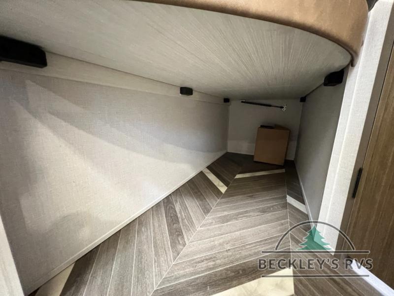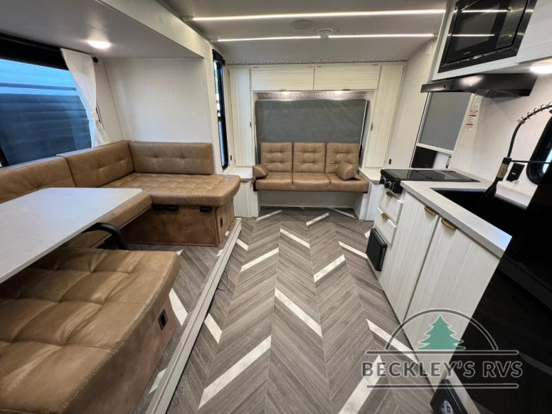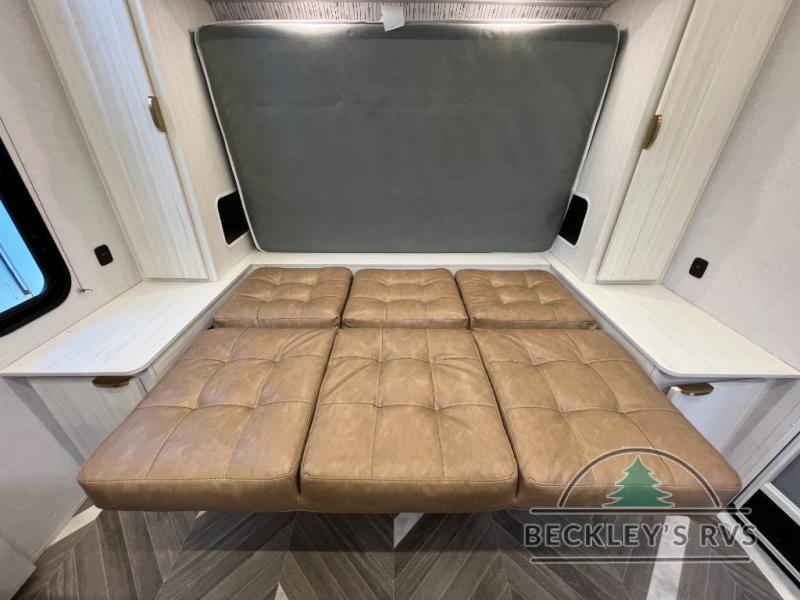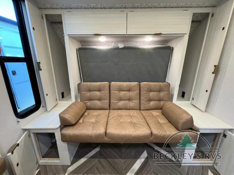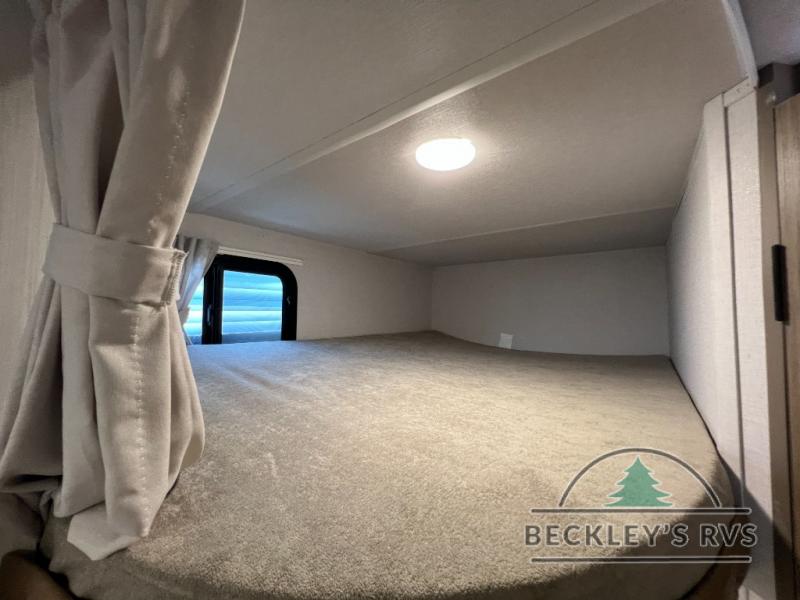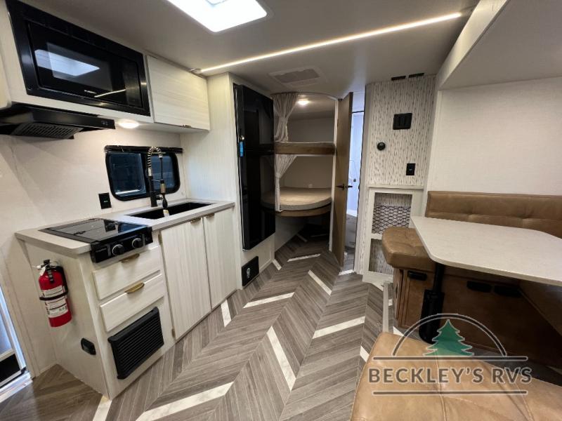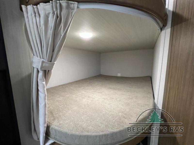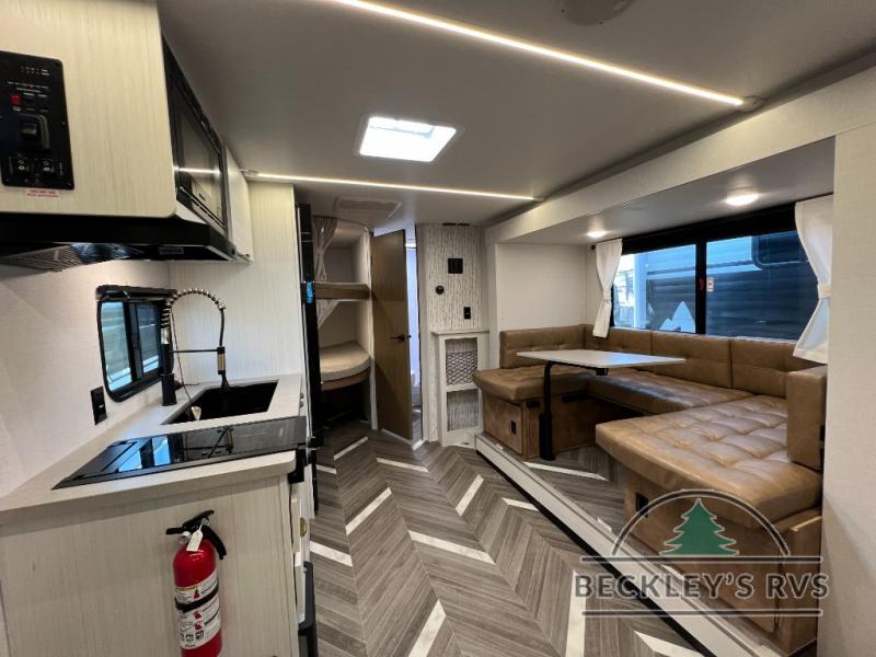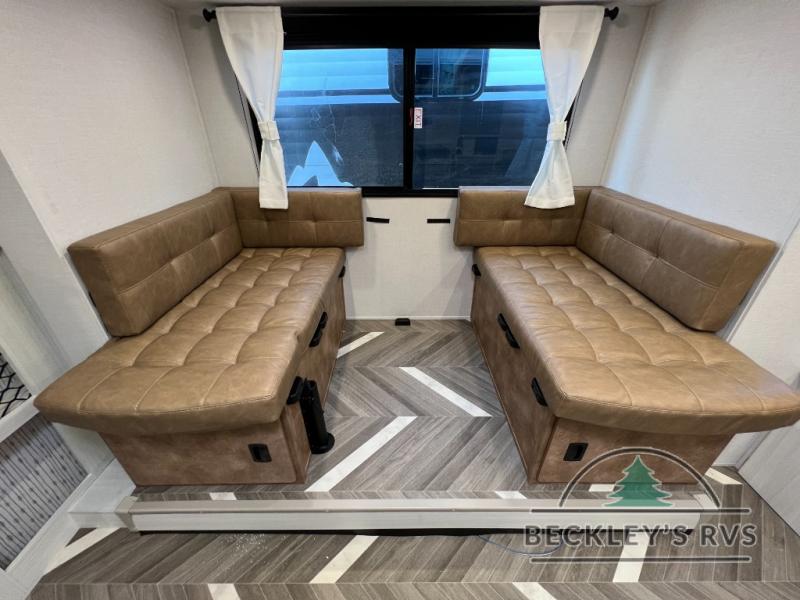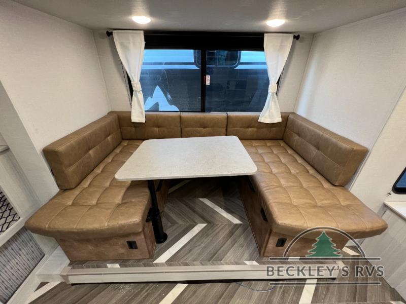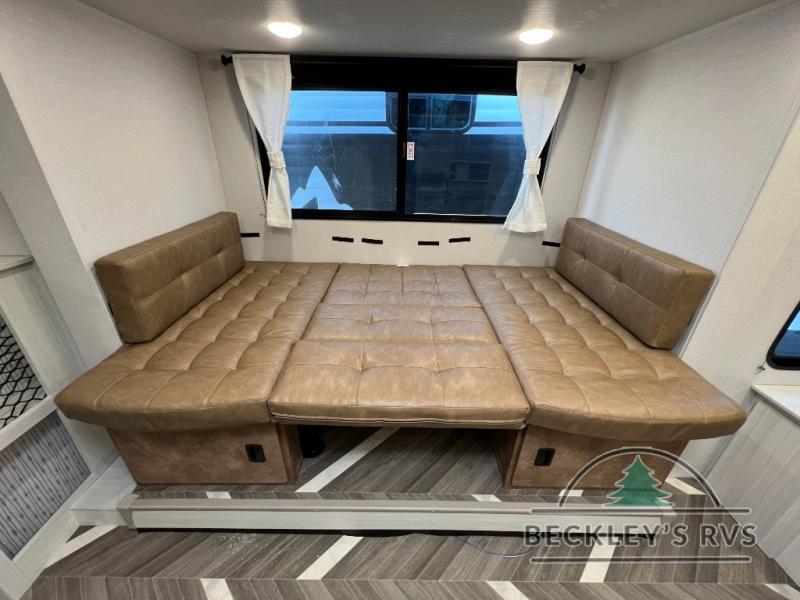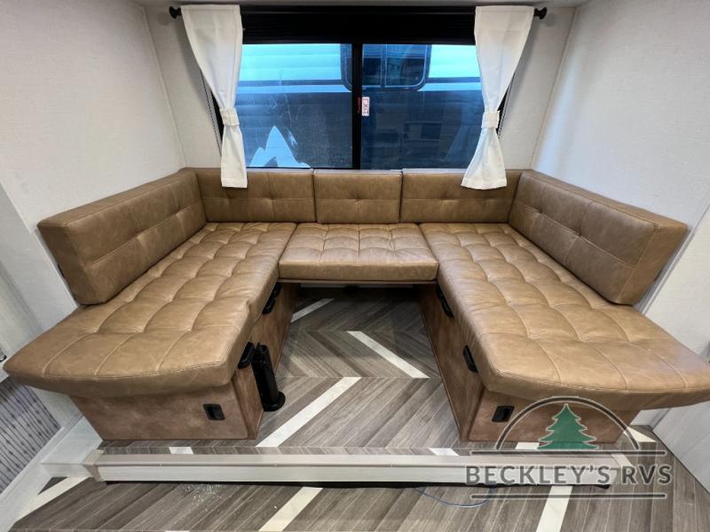 You can create the perfect oasis with this Ozark travel trailer! The exterior is outfitted with a 14' power awning to protect you from the hot summer sun and rain. On the interior, there is extra roominess thanks to the single slide. This slide holds the U-shaped dinette/booth dinette combo where you can dine at. The Murphy bed is especially useful when you are trying to be frugal with your space because it can fold away to reveal a sofa during the day allowing more space to move about. The double-size bunks provide plenty of sleeping space, and the panoramic window and lets the sunshine in.