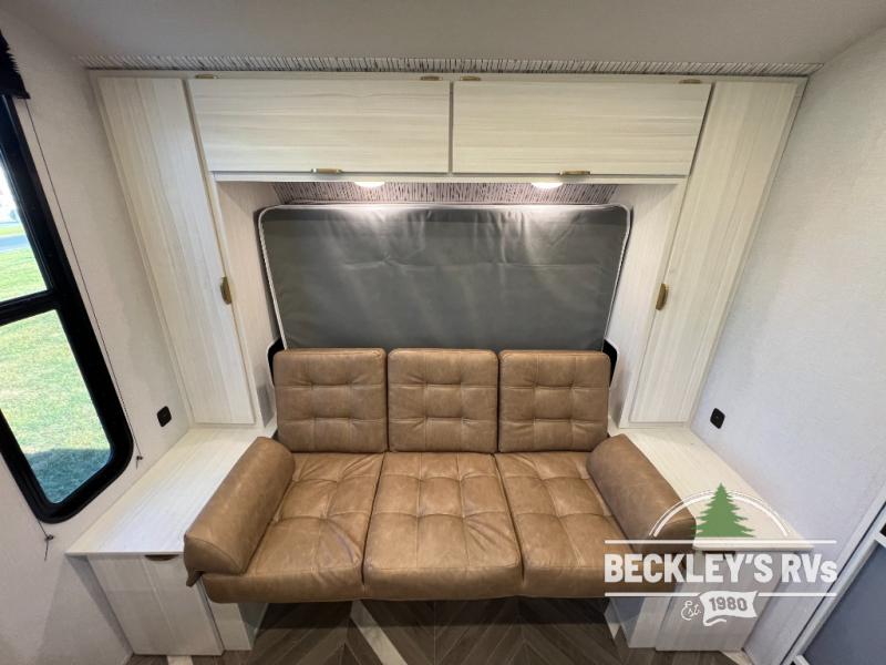 You can create the perfect oasis with this Ozark travel trailer! The exterior is outfitted with a 14' power awning to protect you from the hot summer sun and rain. On the interior, there is extra roominess thanks to the single slide. This slide holds the U-shaped dinette/booth dinette combo where you can dine at. The Murphy bed is especially useful when you are trying to be frugal with your space because it can fold away to reveal a sofa during the day allowing more space to move about. The double-size bunks provide plenty of sleeping space, and the panoramic window and lets the sunshine in.