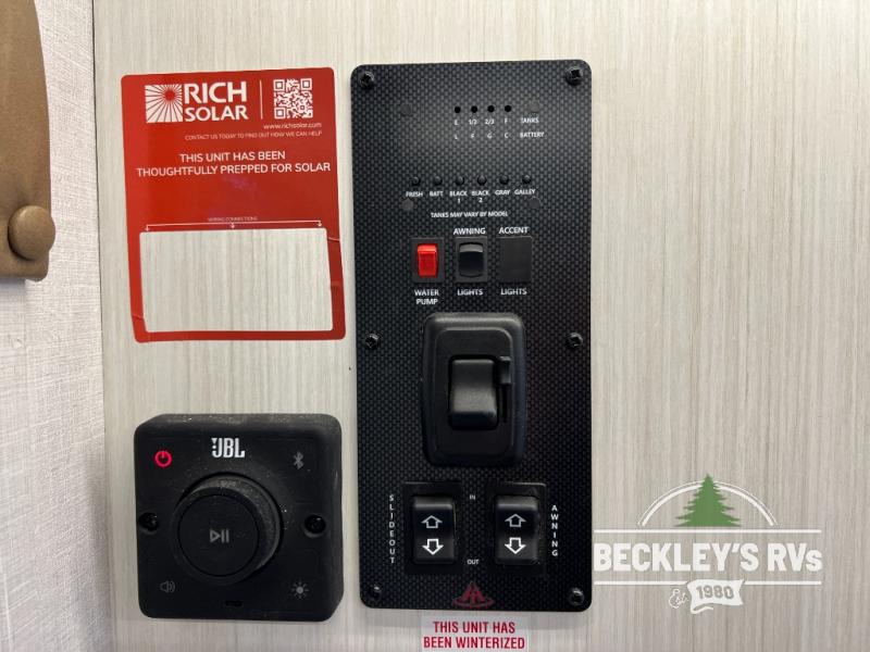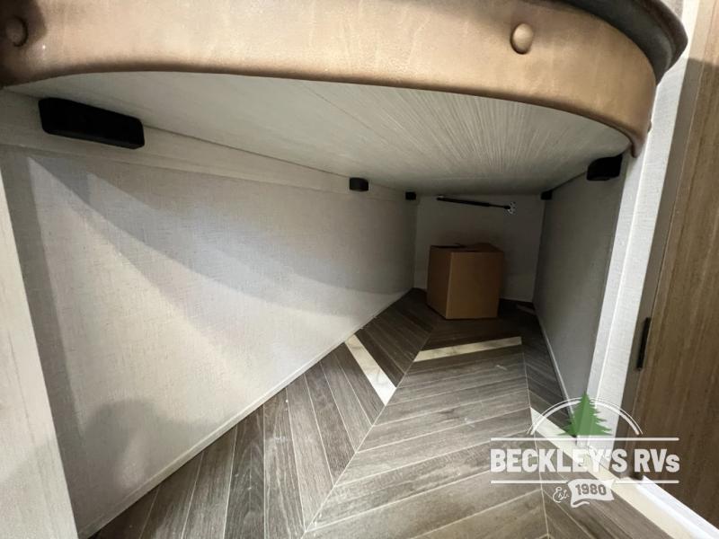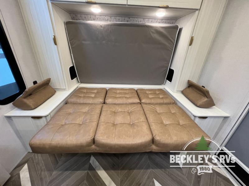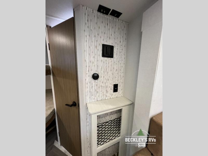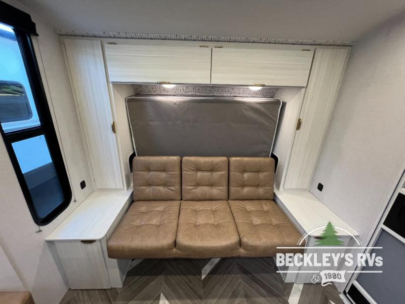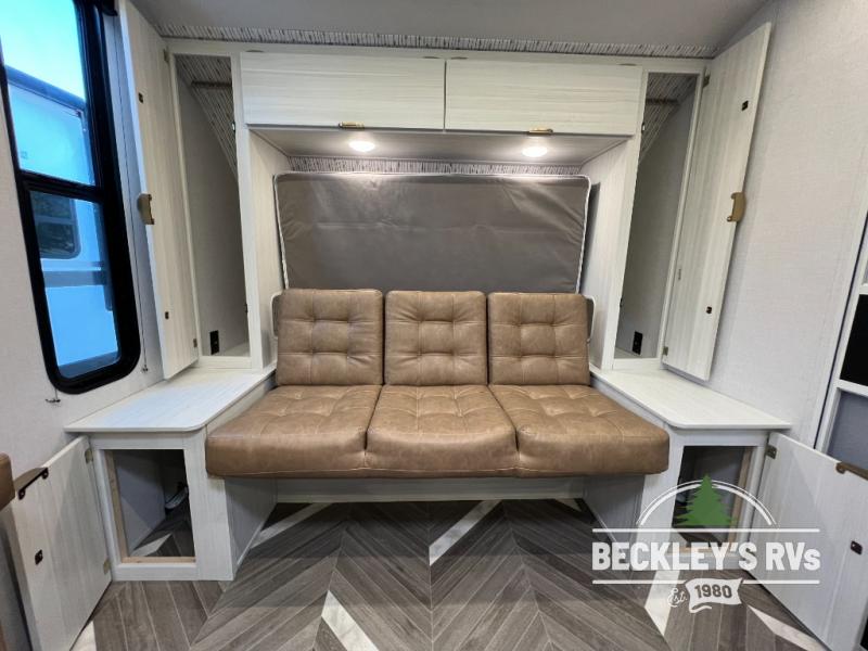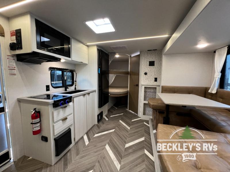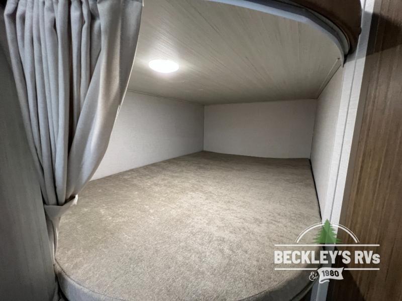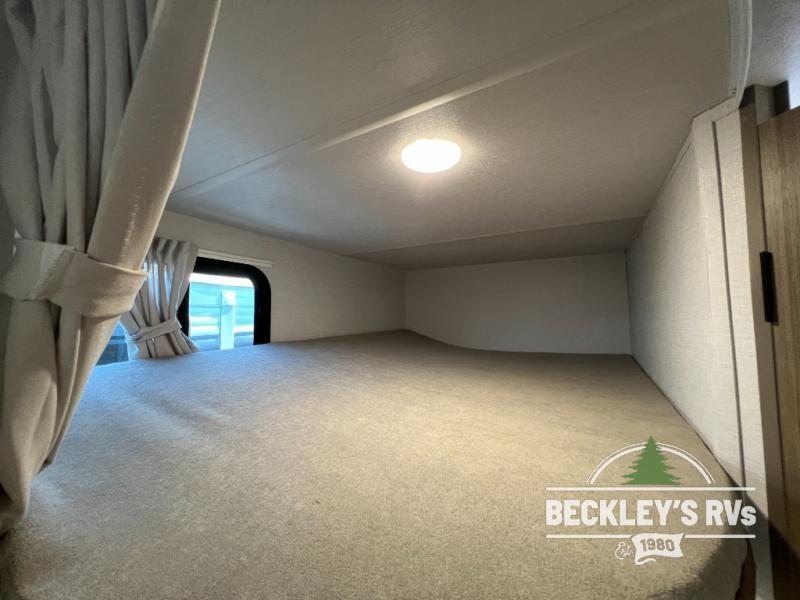 You can create the perfect oasis with this Ozark travel trailer! The exterior is outfitted with a 14' power awning to protect you from the hot summer sun and rain. On the interior, there is extra roominess thanks to the single slide. This slide holds the U-shaped dinette/booth dinette combo where you can dine at. The Murphy bed is especially useful when you are trying to be frugal with your space because it can fold away to reveal a sofa during the day allowing more space to move about. The double-size bunks provide plenty of sleeping space, and the panoramic window and lets the sunshine in.