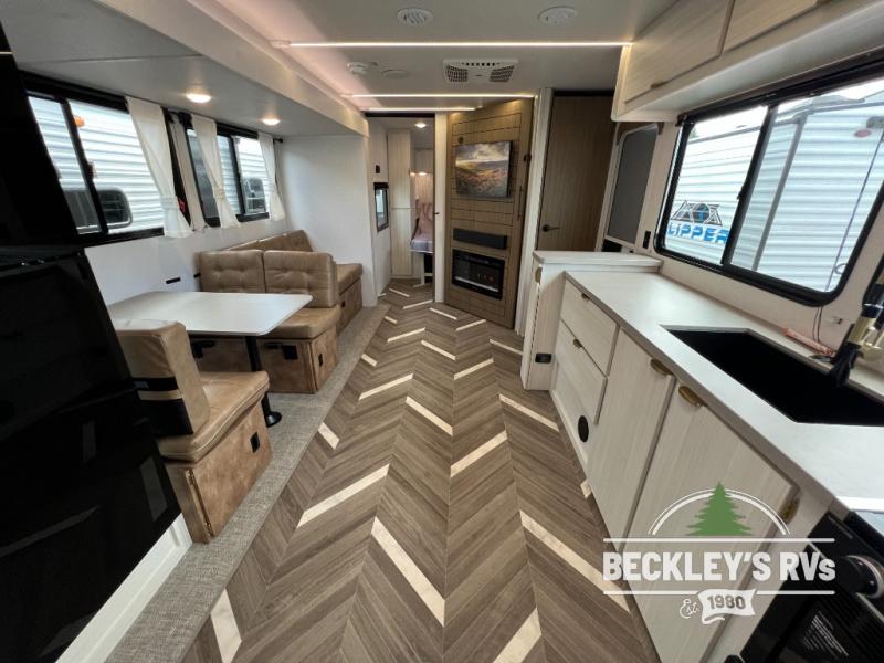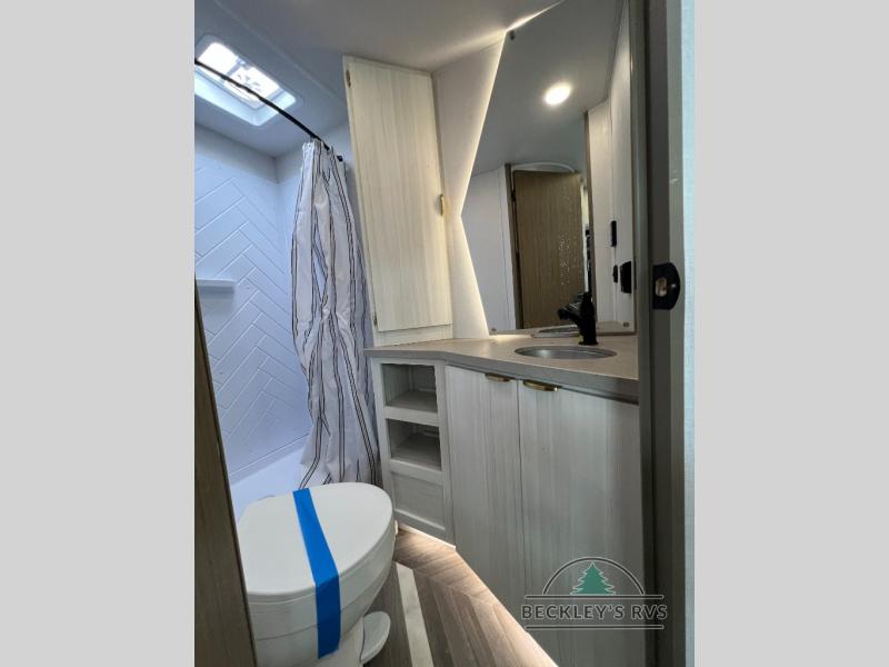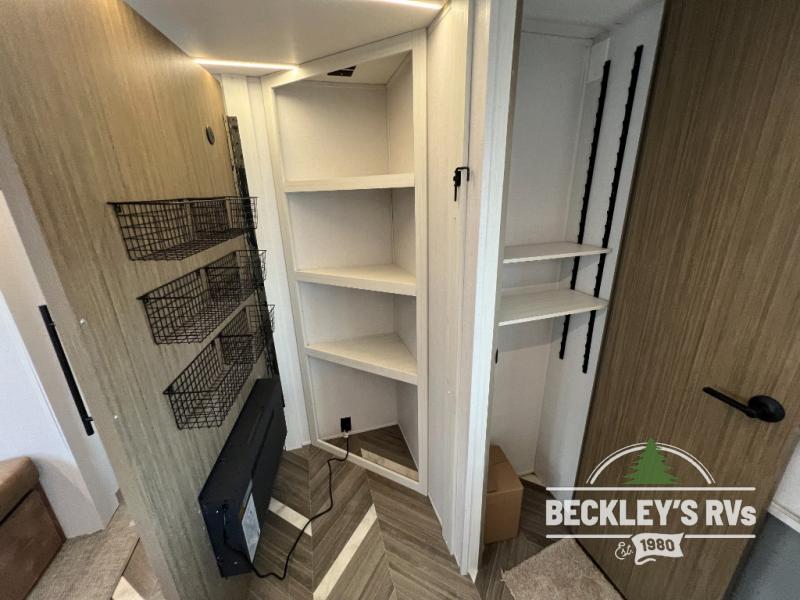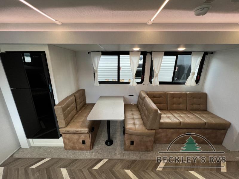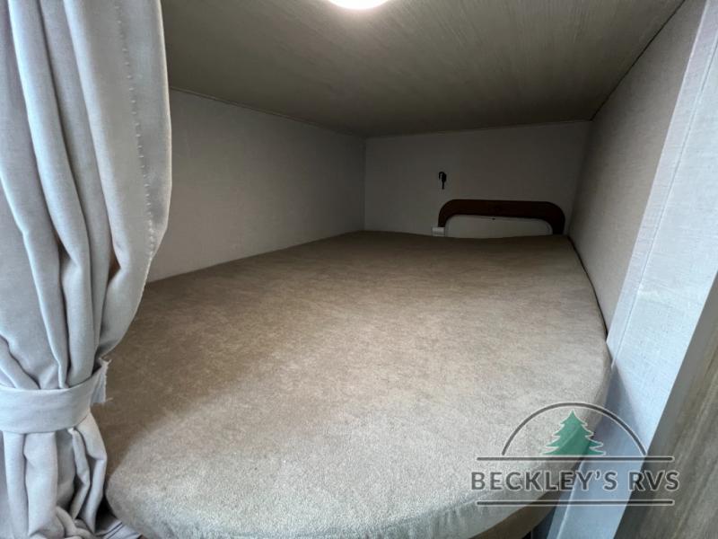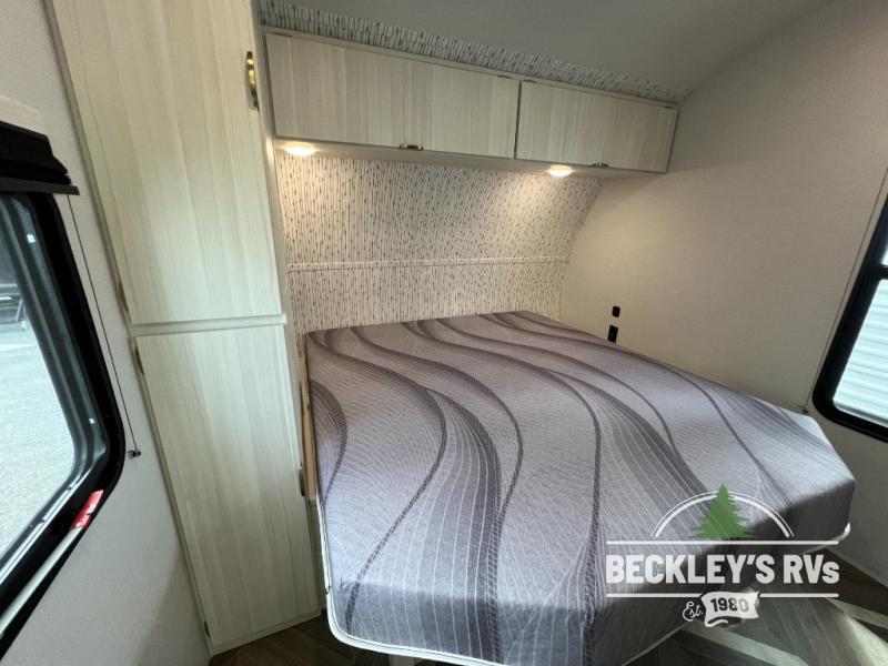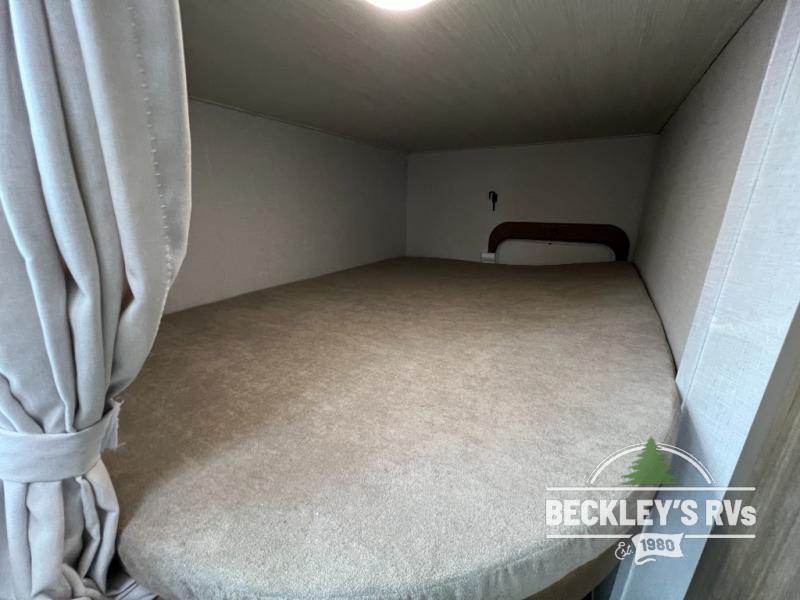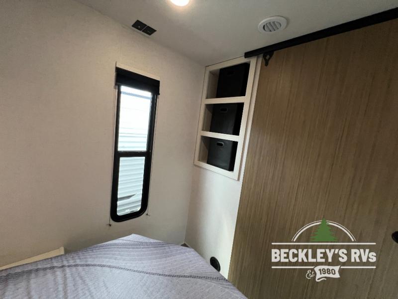 Trips to the lake just got sweeter in this travel trailer with a large slide for more space. Here, you'll find an versa lounge , and the entertainment center with a fireplace will make it feel a little more like home. A full bath with a 36" x 30" shower will let you clean up each day without having to use the camp's facilities, and the double-size bunks with an exterior bike door will let you easily pack gear in. Head up front to enjoy the private bedroom all to yourselves with a king bed and dual wardrobes for wrinkle-free clothes!