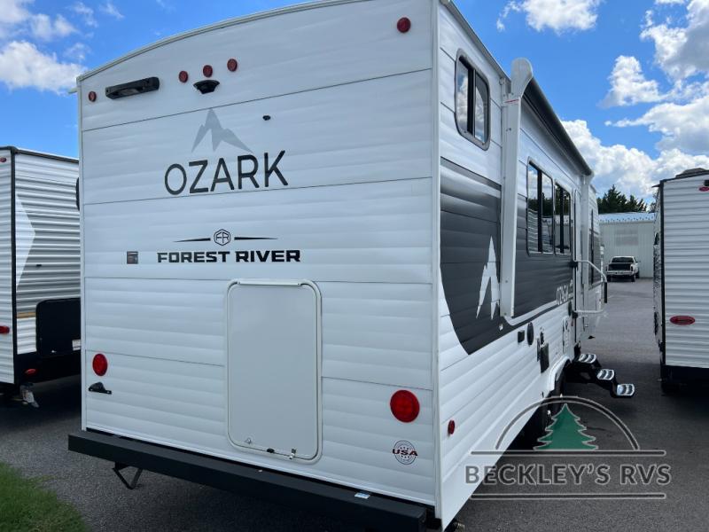 With any Ozark travel trailer or toy hauler by Forest River, you can expect lightweight towing, tons of standard features, and a great value! Each one is built with solid materials, including fiberglass insulation throughout, front diamond plate rock guard for added protection, and a powder coated I-beam frame with camber for more structural support! The stylish interior will have you feeling right at home, and you'll find plenty of storage spaces for your personal belongings, camp gear, and more. And since there are a variety of floorplans to choose from, including Limited Edition travel trailers, single axle and dual axle models, plus toy haulers, you're sure to find the Ozark that fits your needs!