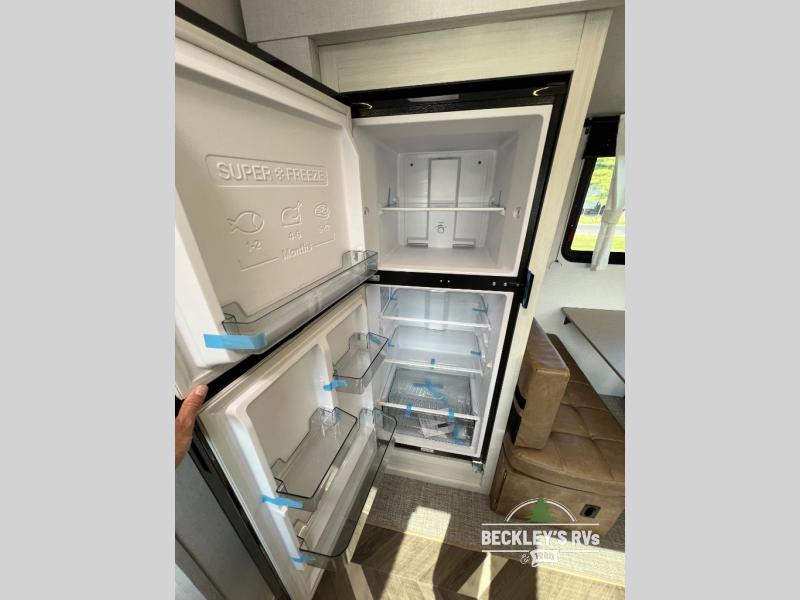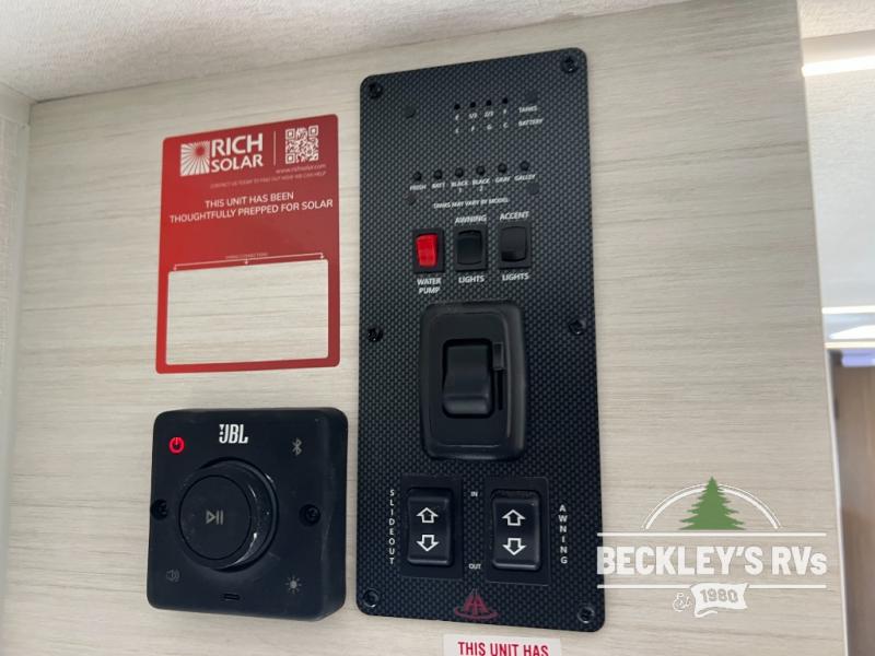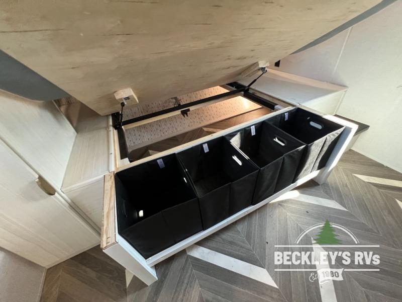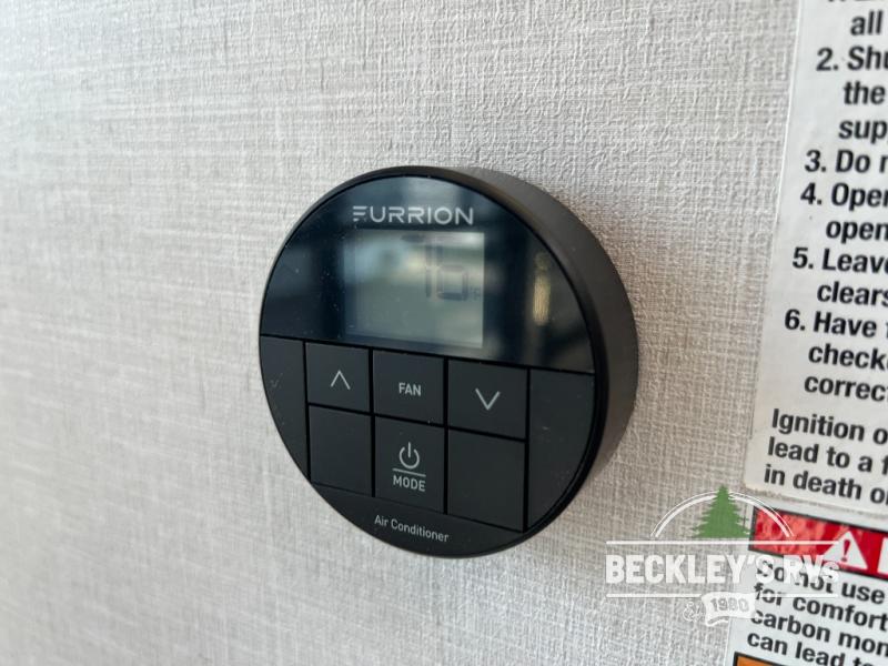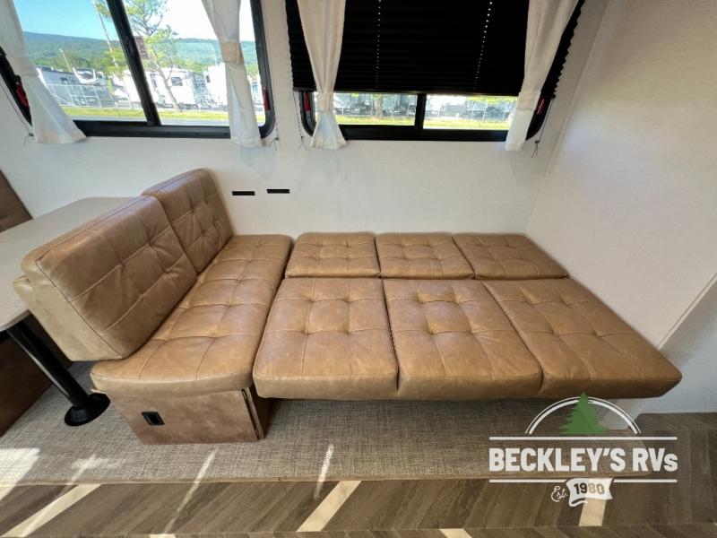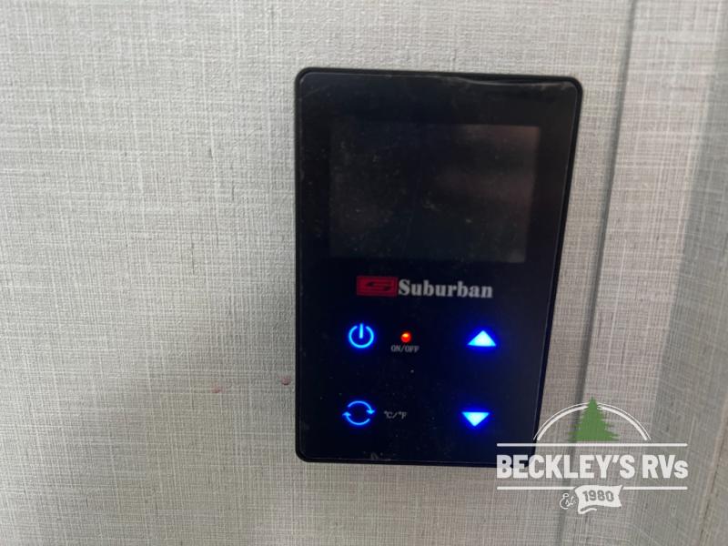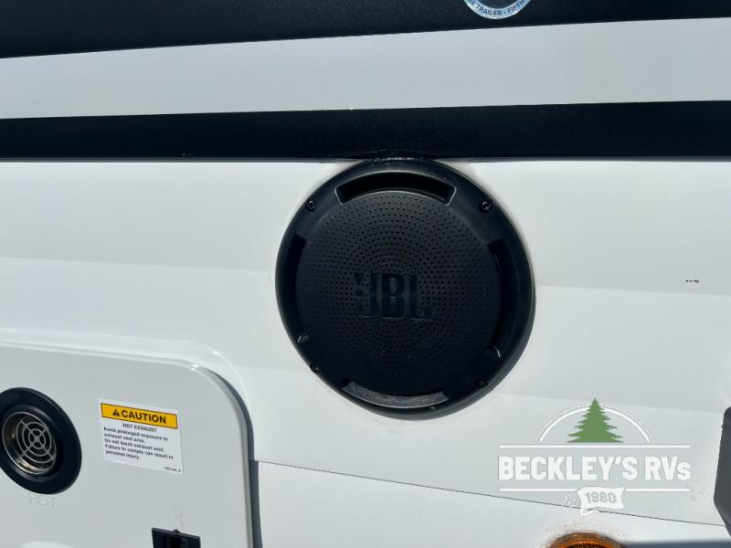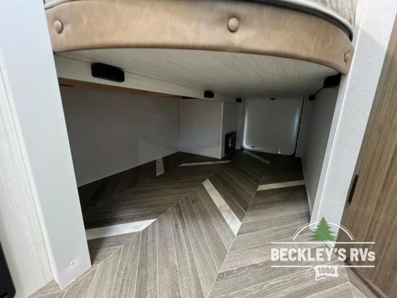 Trips to the lake just got sweeter in this travel trailer with a large slide for more space. Here, you'll find an versa lounge , and the entertainment center with a fireplace will make it feel a little more like home.  A full bath with a 36" x 30" shower will let you clean up each day without having to use the camp's facilities, and the double-size bunks with an exterior bike door will let you easily pack gear in. Head up front to enjoy the private bedroom all to yourselves with a king bed and dual wardrobes for wrinkle-free clothes!