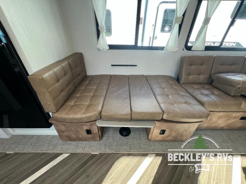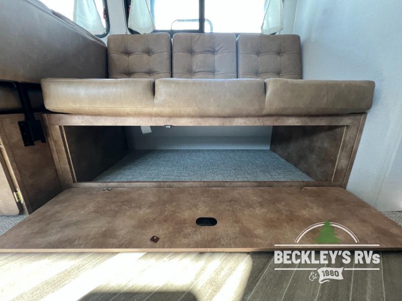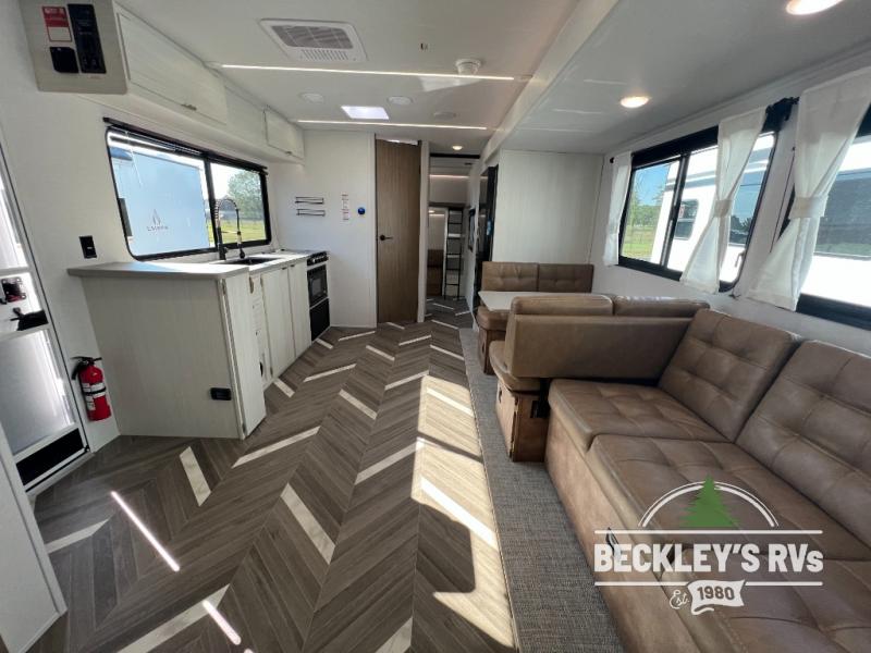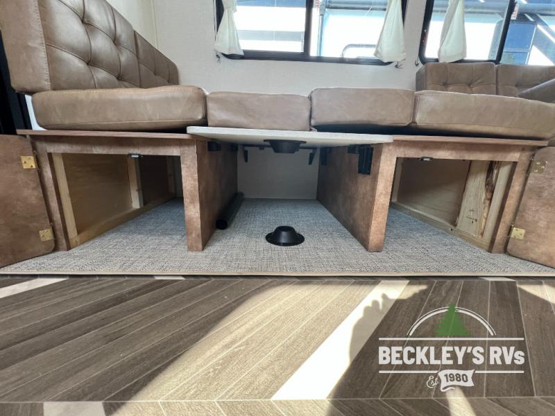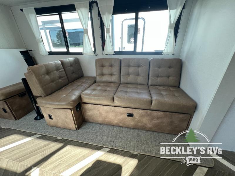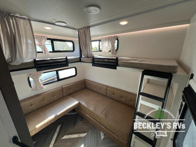 Trips to the lake just got sweeter in this travel trailer with a large slide for more space. Here, you'll find an versa lounge, and the entertainment center with a fireplace will make it feel a little more like home. A full bath with a 24' x 36" shower will let you clean up each day without having to use the camp's facilities, and the rear bunkhouse will provide sleeping space for your guests or kids. There are two bunk beds here, along with an open lounge/queen bed combo and storage space to keep this room tidy. Head up front to enjoy the private bedroom all to yourselves with a king bed and dual wardrobes for wrinkle-free clothes!