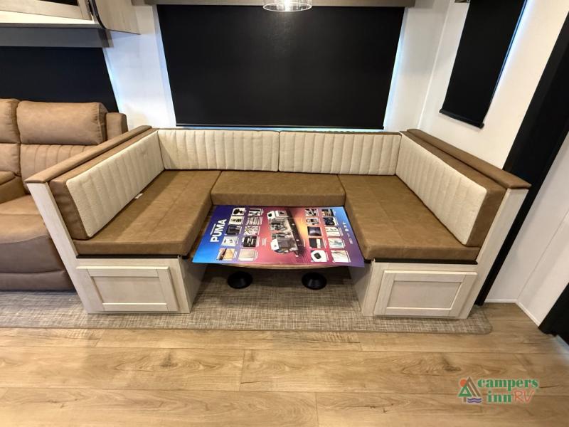 If you're looking for family-fun adventures then you need one of these Palomino Puma fifth wheels or travel trailers! They are built rugged, easy to tow, and jam packed with features. The Darco wrapped underbelly will protect your units vitals and the AlphaPly roofing membrane covers it. They also have new aluminum wheels and a powder coated steel I-beam frame. Inside, the Congoleum linoleum will be easy to keep clean, and the night roller shades will provide privacy when it's time to turn in. You'll also enjoy an electric awning with an LED light strip plus an AM/FM/Bluetooth stereo and two outside speakers to keep the party going!