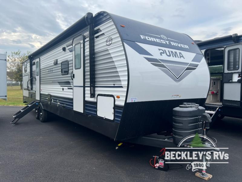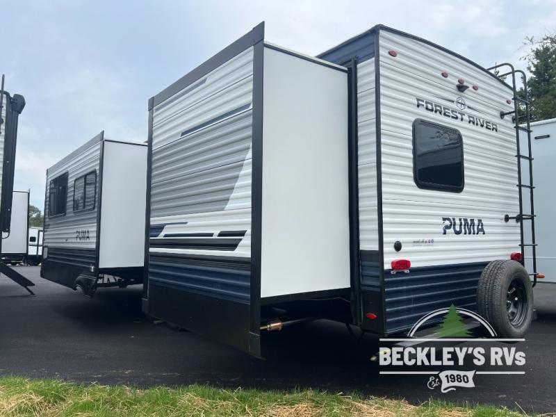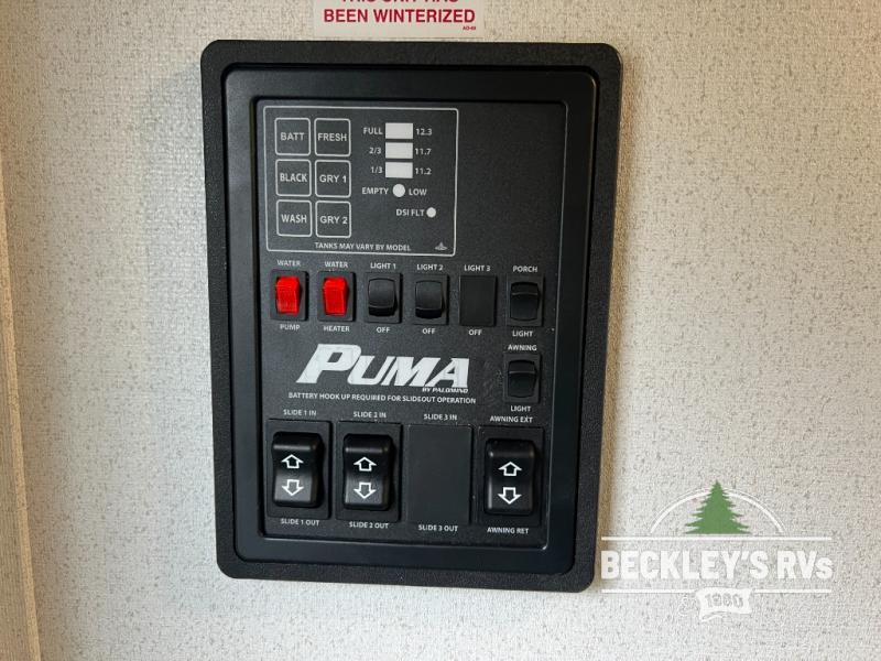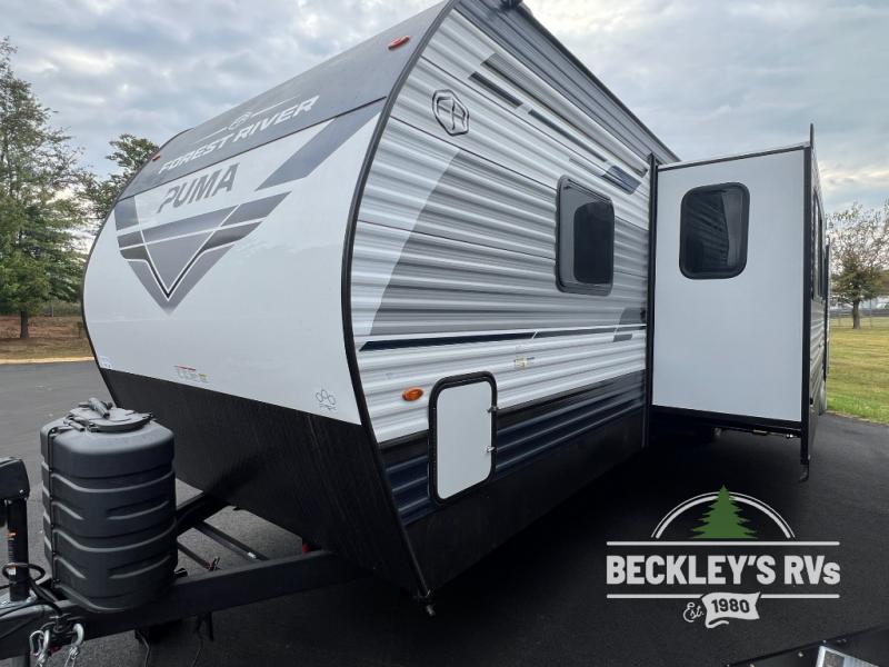 If you're looking for family-fun adventures then you need one of these Palomino Puma fifth wheels or travel trailers! They are built rugged, easy to tow, and jam packed with features. The Darco wrapped underbelly will protect your units vitals and the AlphaPly roofing membrane covers it. They also have new aluminum wheels and a powder coated steel I-beam frame. Inside, the Congoleum linoleum will be easy to keep clean, and the night roller shades will provide privacy when it's time to turn in. You'll also enjoy an electric awning with an LED light strip plus an AM/FM/Bluetooth stereo and two outside speakers to keep the party going!