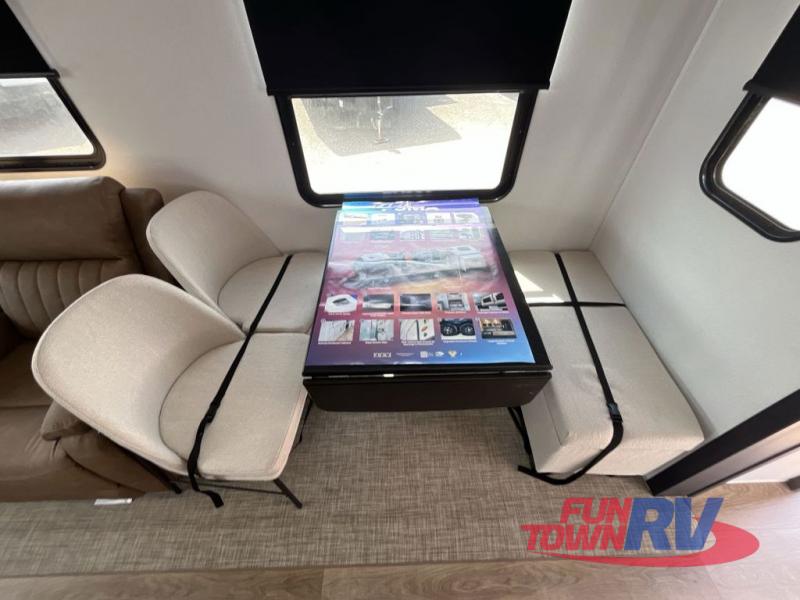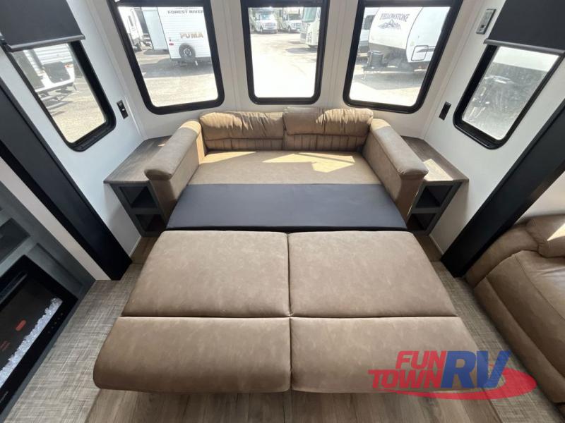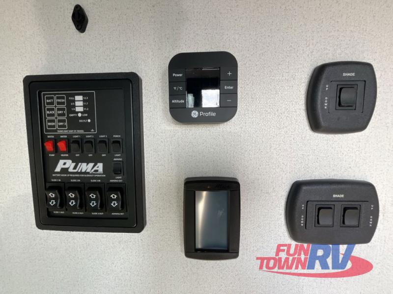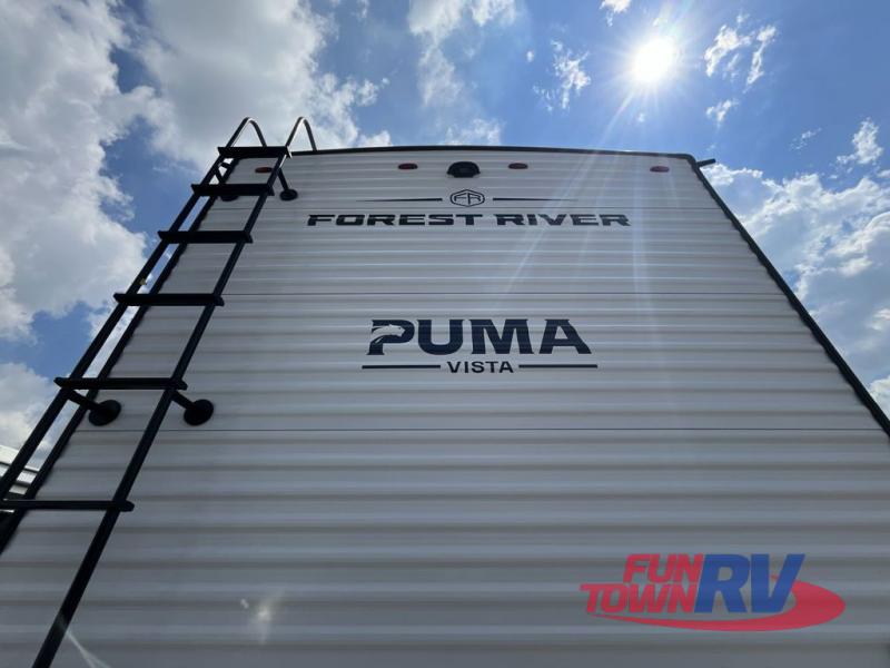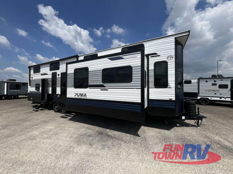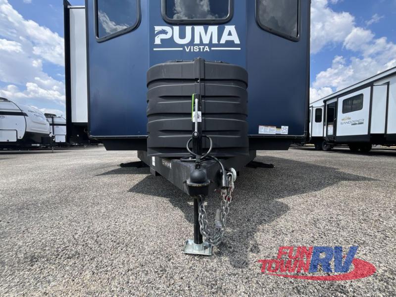 Each Puma Destination trailer by Palomino is designed to give you unforgettable getaways to the destination of your choice! The required Value Shopper Loft Package includes Congoleum designer linoleum, night roller shades, LED lighting, and a 24" stainless steel oven with a four burner stove so you can make meals just like you would at home. The tankless water heater is another feature you won't want to camp without, and there is WiFi prep, solar prep, plus optional washer and dryer prep for the option to further customize your trailer. An outside shower is included with the required Loft Package, along with two exterior speakers, solid surface countertops, four stabilizer jacks, and more!