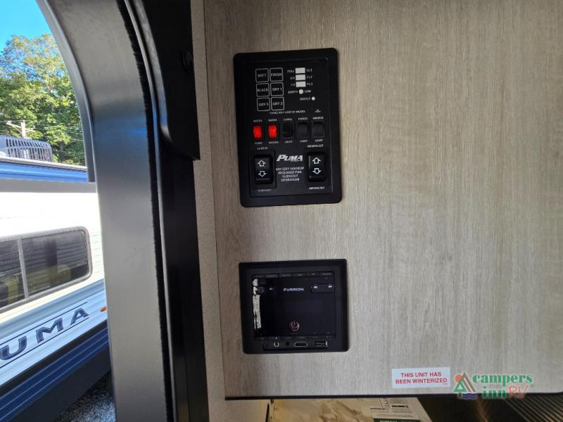 The Puma Camping Edition also comes with durable construction, featuring 5/8" tongue and groove plywood flooring, a front diamond plate for extra protection, and exterior clamp-style door latches for added security. It’s also prep-ready for a backup camera, and the 20 lb. LP bottles provide sufficient fuel for your trips.