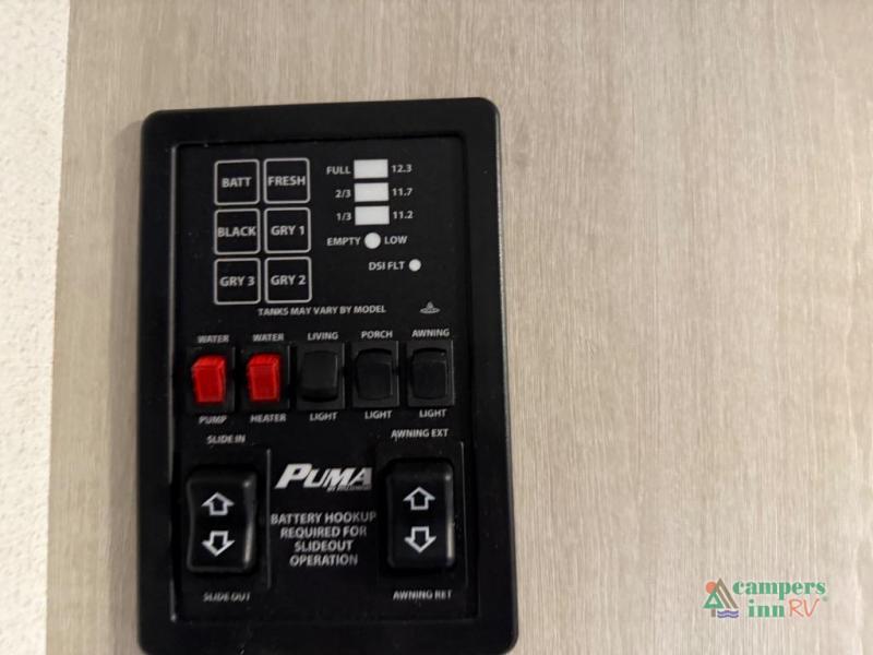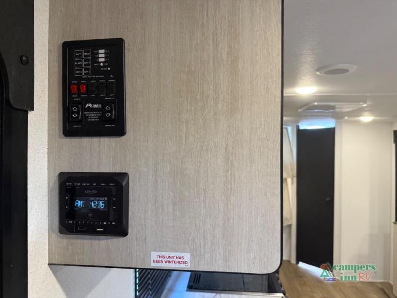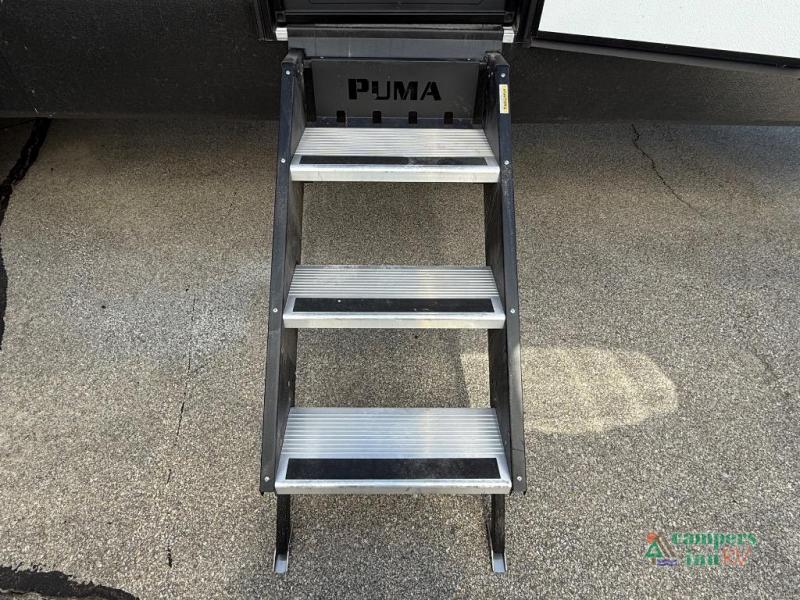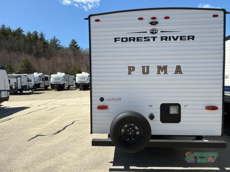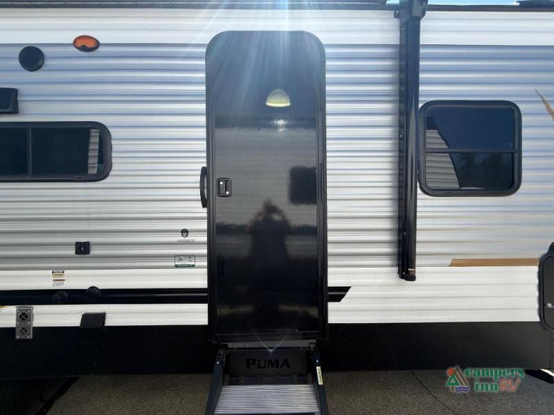 The Puma Camping Edition by Palomino offer an affordable travel trailer for rookie campers or seasoned RVers! They are built with 5/8" tongue and groove plywood flooring and a front diamond plate for added protection. There are also exterior clamp style door latches, back up camera prep, and 20 lb. LP bottles. Head inside to find Thermofoil countertops with a smooth drop edge, bedroom USB ports and outlets, and a GE appliance and kitchen package.