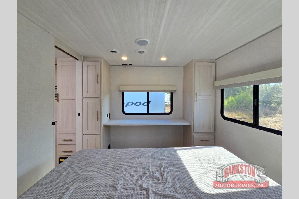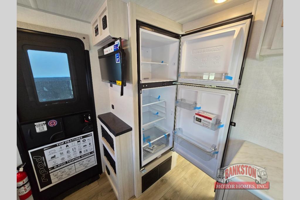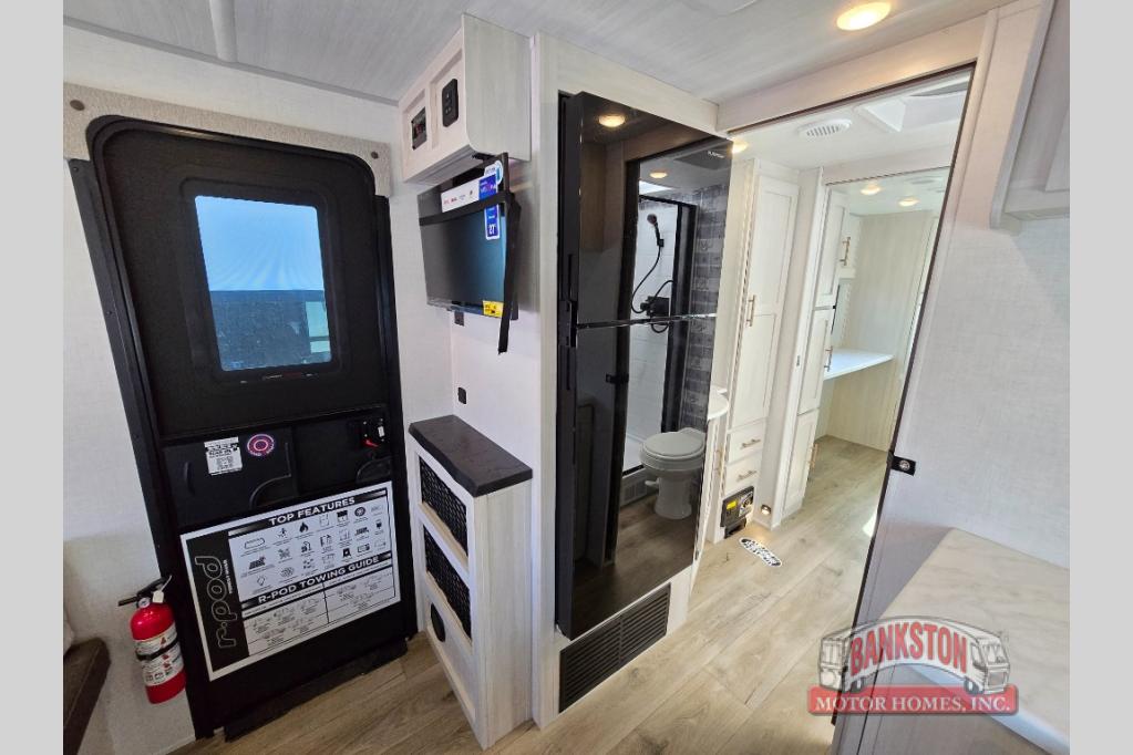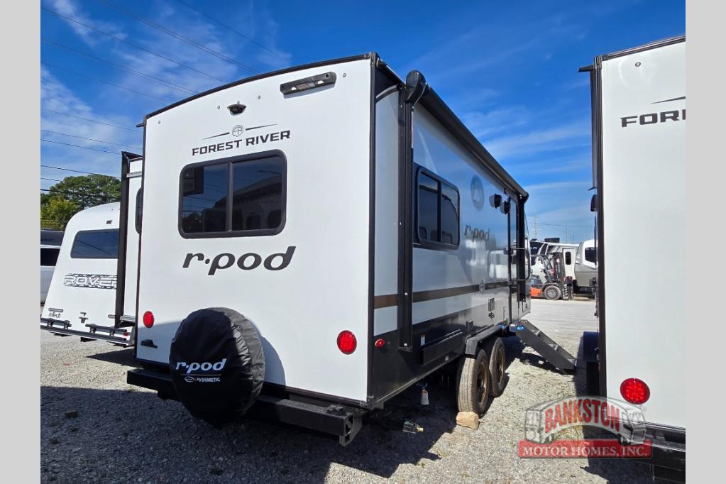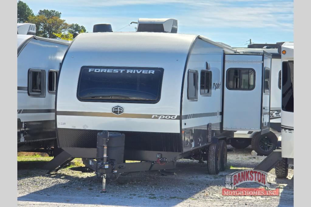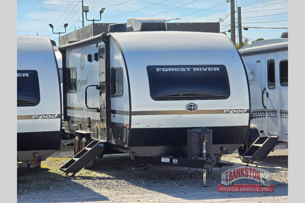 With any R-Pod travel trailer by Forest River, you will enjoy affordable luxury at the lowest tow weight in its class! There is a sealed underbelly with forced heat, a curved dual-pane acrylic front window with a bug screen and night shade, plus a large roof mounted solar panel for off-grid capabilities. The 15K A/C unit will keep you comfortable during the summer camping months, and the tankless water heater will provide endless hot showers after hiking, biking, swimming and more! Each model also includes a black glass friction hinge entrance door, roof ladder prep, exterior motion lighting, plus a hot and cold exterior spray port to wash off sand from the beach. Inside, you'll enjoy seamless Surf-X kitchen countertops, blackout roller shades, and a central vacuum system for hassle-free cleaning!