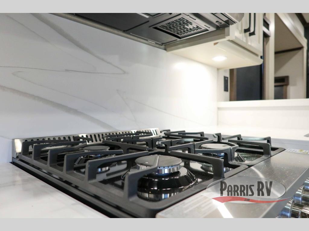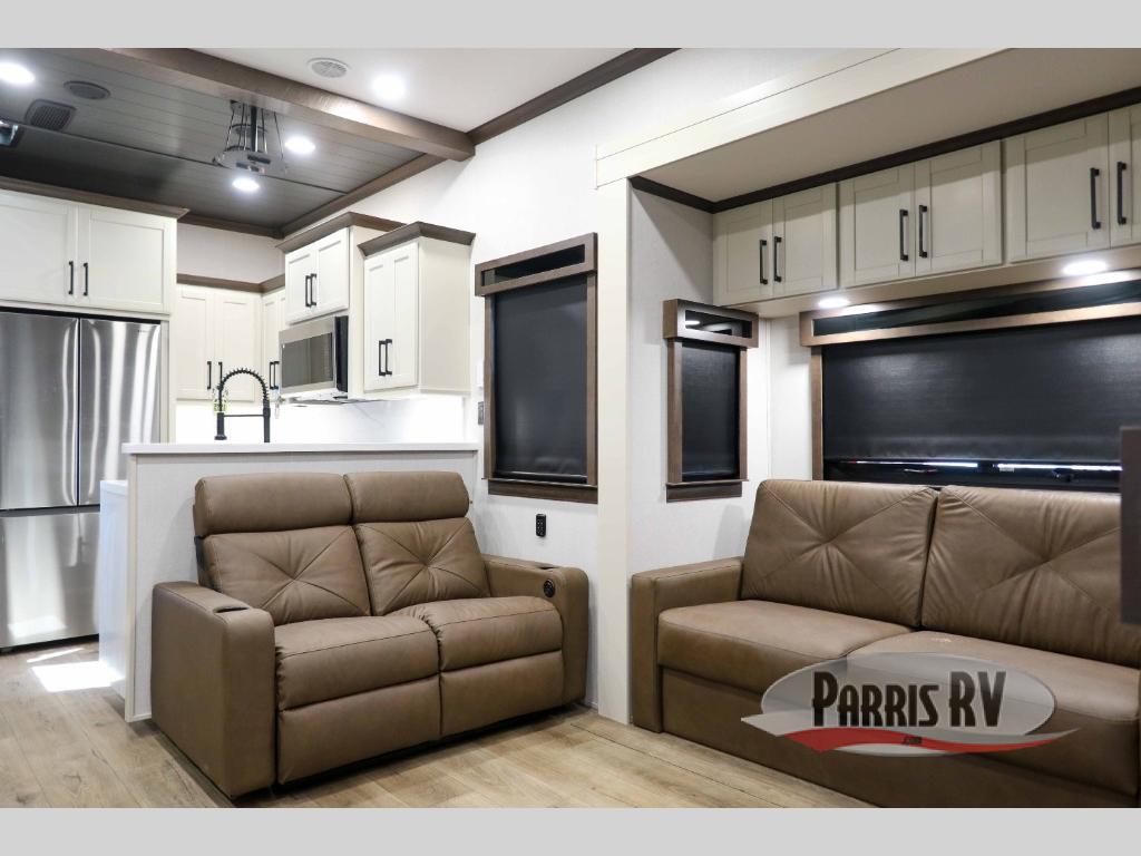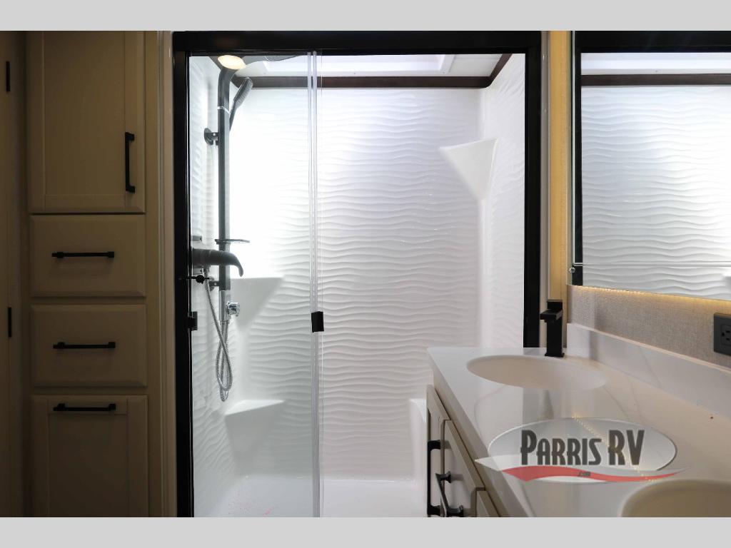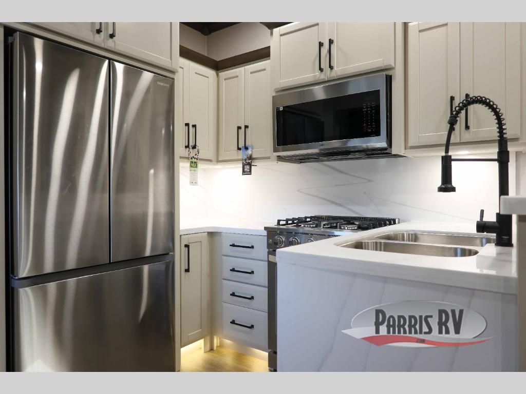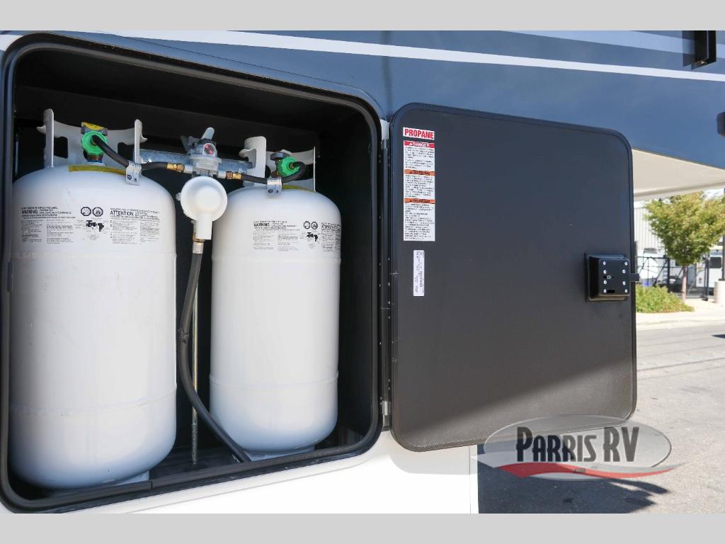 The Forest River RiverStone fifth wheels and toy haulers are luxurious units that have it all! You'll find an automatic six-point hydraulic level-up system to keep your unit in place, and there is preparation for a four-camera observation system. The TravlFi Journey XTR 4G/LTE router and WiFi extender will help you stay connected to the outside world, and you'll never have to overpack again since the Splendid “Astral” stackable washer and dryer will let you clean the small amount of clothes you've brought with you. Another high luxury is the Fischer Paykal dishwasher which will allow you to spend more time enjoying your camp life and less time cleaning up. Each unit is built with an LCI Road Armour suspension system, dual-pane frameless windows, a full docking station, a 200W solar panel, and a BMPro touch control system.