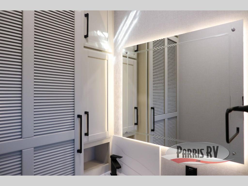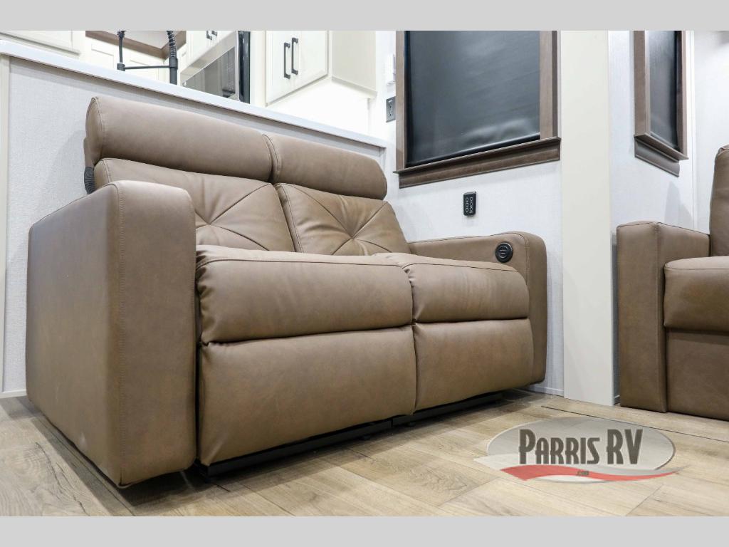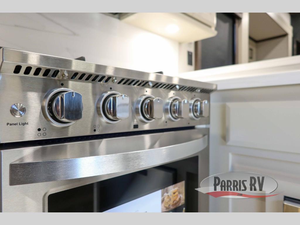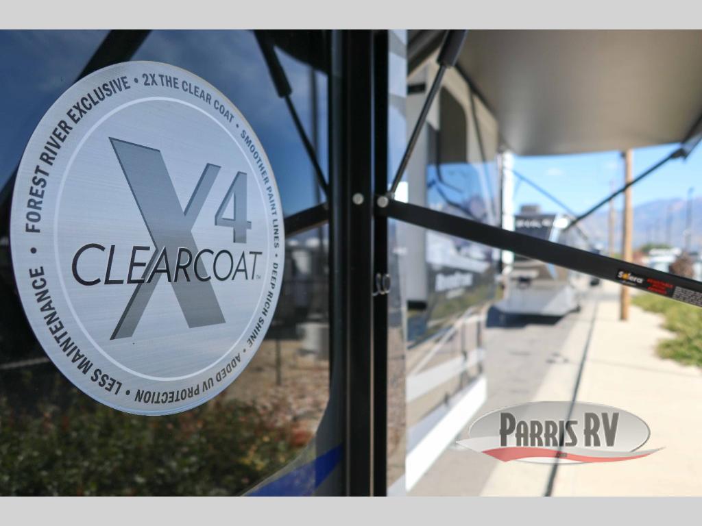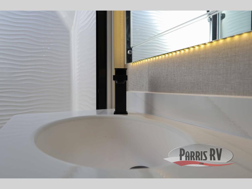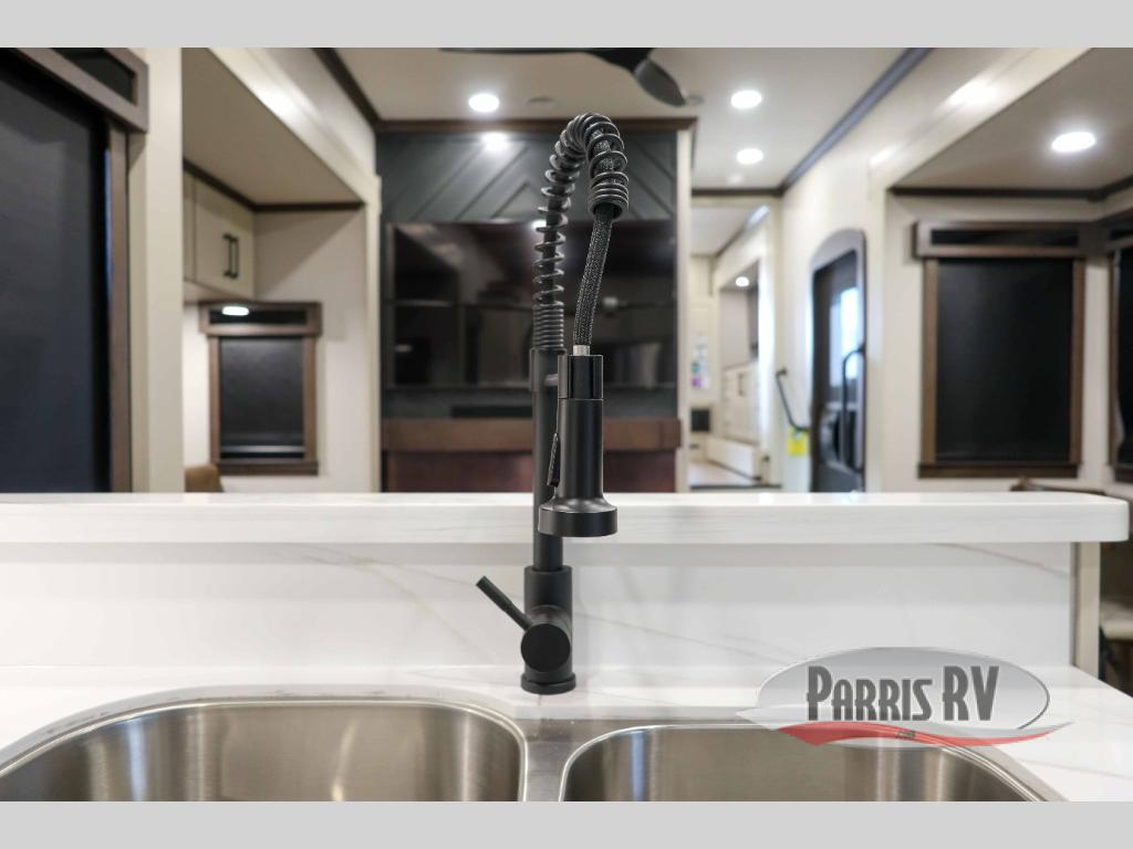 The Forest River RiverStone fifth wheels and toy haulers are luxurious units that have it all! You'll find an automatic six-point hydraulic level-up system to keep your unit in place, and there is preparation for a four-camera observation system. The TravlFi Journey XTR 4G/LTE router and WiFi extender will help you stay connected to the outside world, and you'll never have to overpack again since the Splendid “Astral” stackable washer and dryer will let you clean the small amount of clothes you've brought with you. Another high luxury is the Fischer Paykal dishwasher which will allow you to spend more time enjoying your camp life and less time cleaning up. Each unit is built with an LCI Road Armour suspension system, dual-pane frameless windows, a full docking station, a 200W solar panel, and a BMPro touch control system.