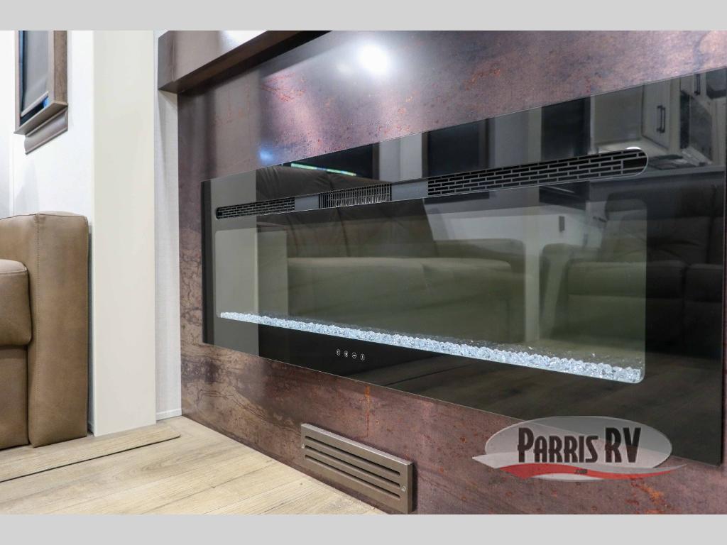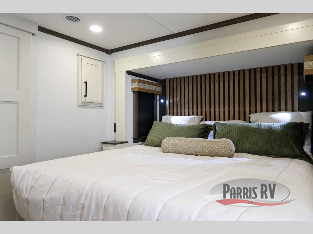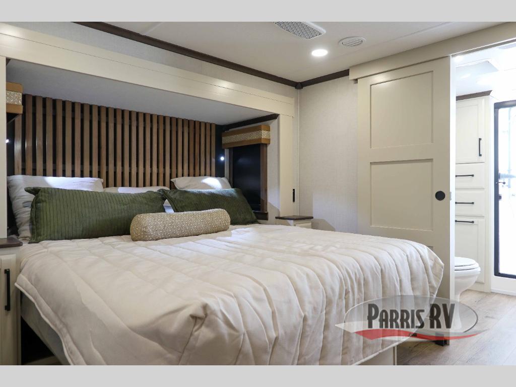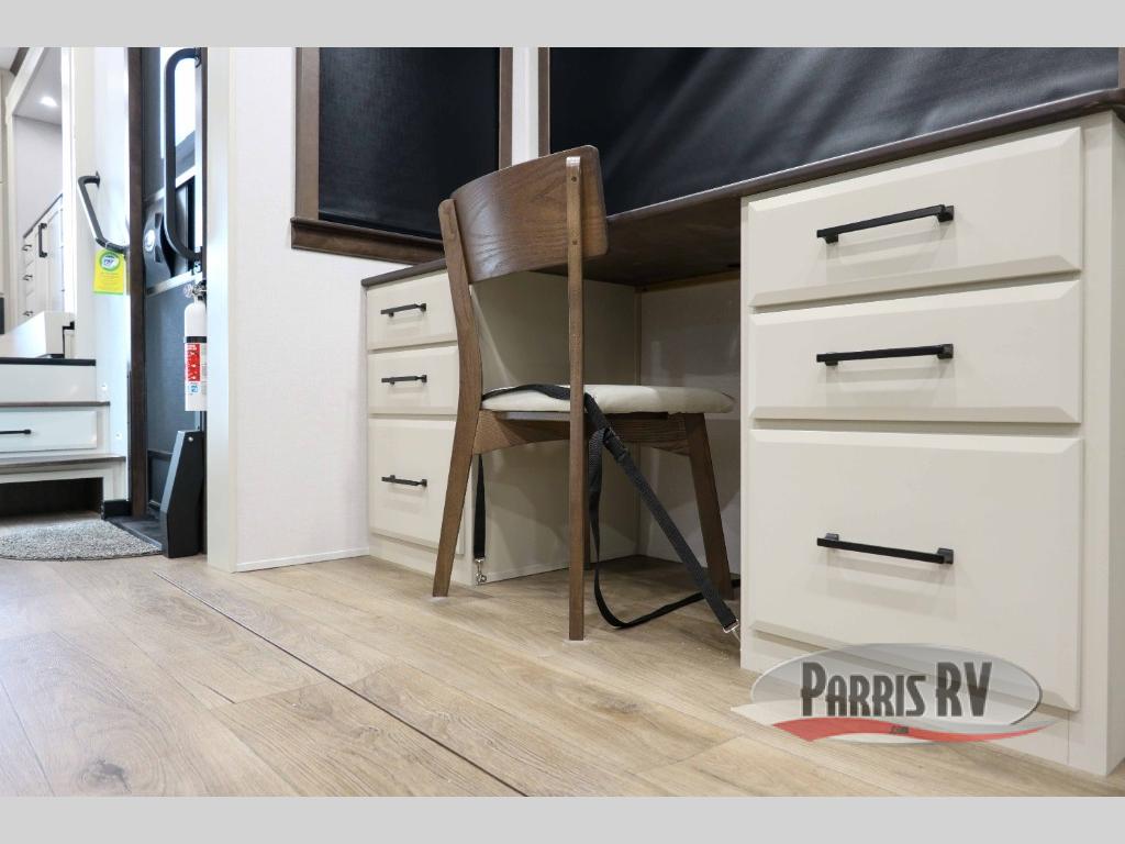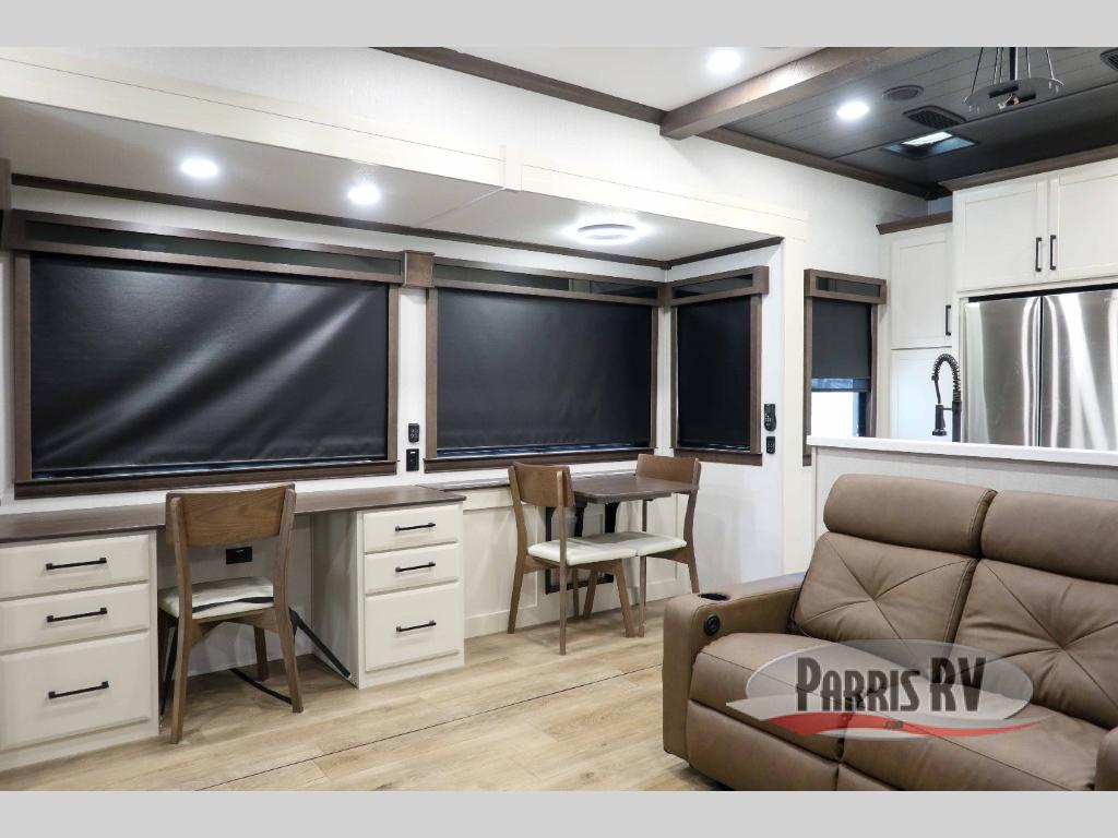 Show your family a good time with this RiverStone fifth wheel! You will get to stay in a super comfortable master suite at the front of this unit which has a dual-sink vanity in the full bathroom. The bedroom offers you a king-size bed that you can rest on while you watch the 40" LED TV across from you, and there is a half bathroom just outside the bedroom for your friends or family to use. If you've decided to bring work with you on the road, you'll be grateful to find a desk in the living area, and the pull-out dinette is a great place to sit down for meals. Work your magic in the kitchen and prepare something delicious on the four-burner range for everyone to eat.