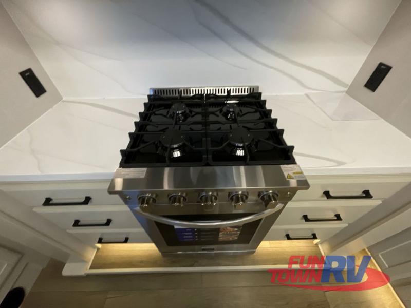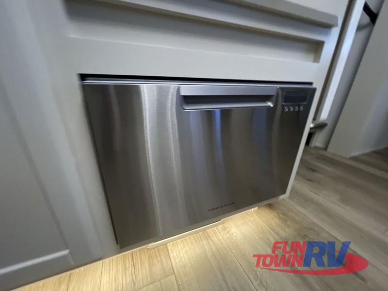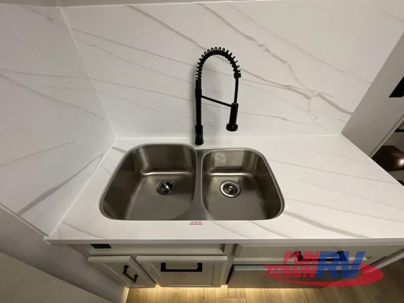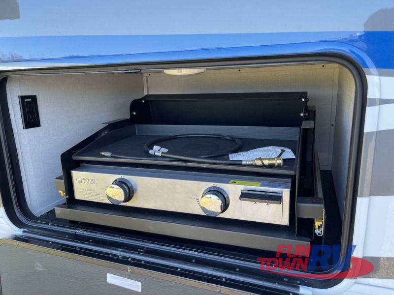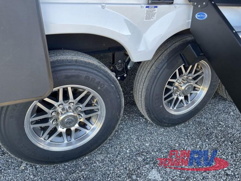The Forest River RiverStone fifth wheels and toy haulers are luxurious units that have it all! You'll find an automatic six-point hydraulic level-up system to keep your unit in place, and there is preparation for a four-camera observation system. The TravlFi Journey XTR 4G/LTE router and WiFi extender will help you stay connected to the outside world, and you'll never have to overpack again since the Splendid “Astral” stackable washer and dryer will let you clean the small amount of clothes you've brought with you. Another high luxury is the Fischer Paykal dishwasher which will allow you to spend more time enjoying your camp life and less time cleaning up. Each unit is built with a LCI Road Armour suspension system, dual-pane frameless windows, a full docking station, a 200W solar panel, and a BMPro touch control system.