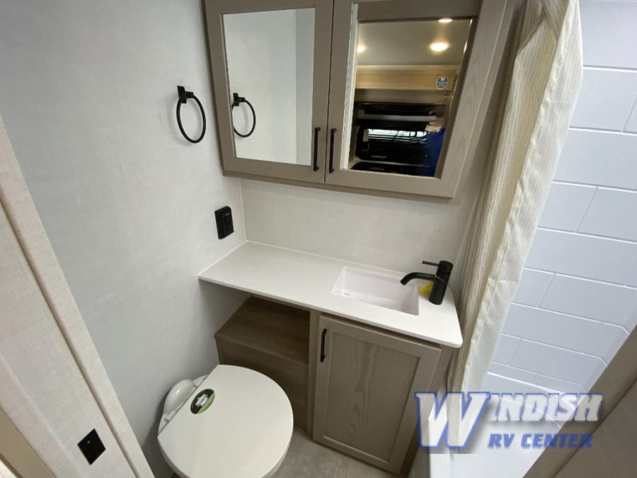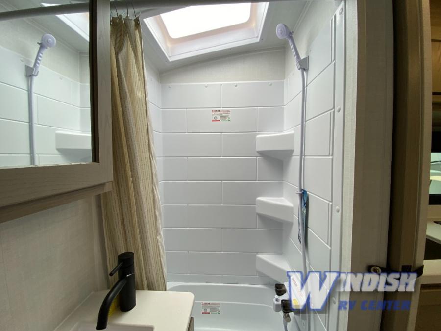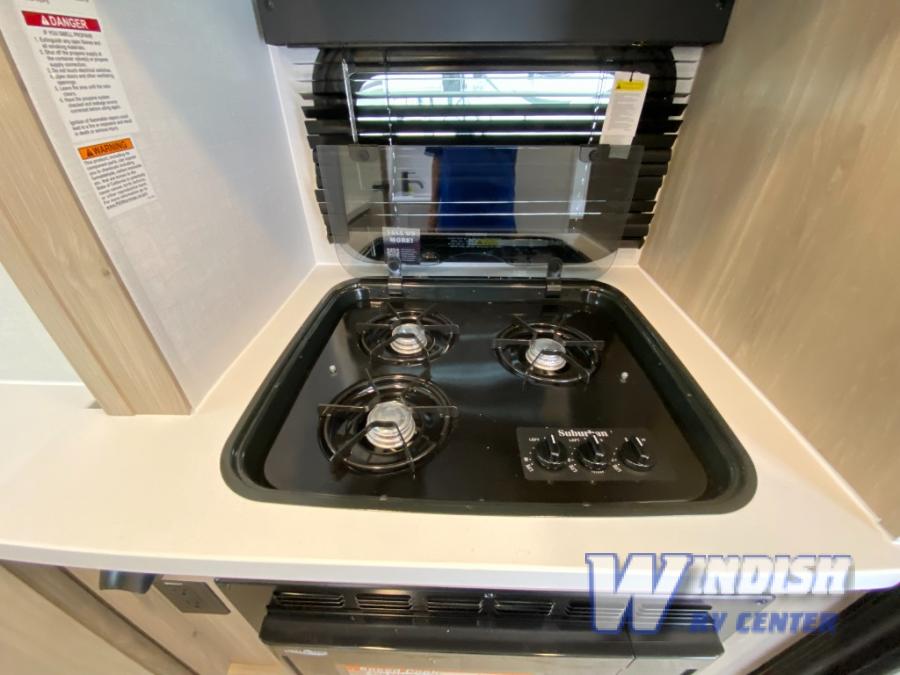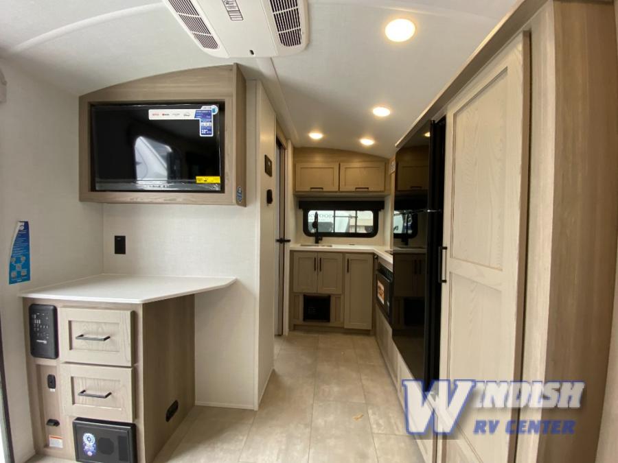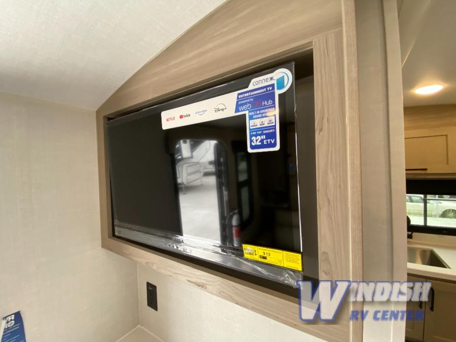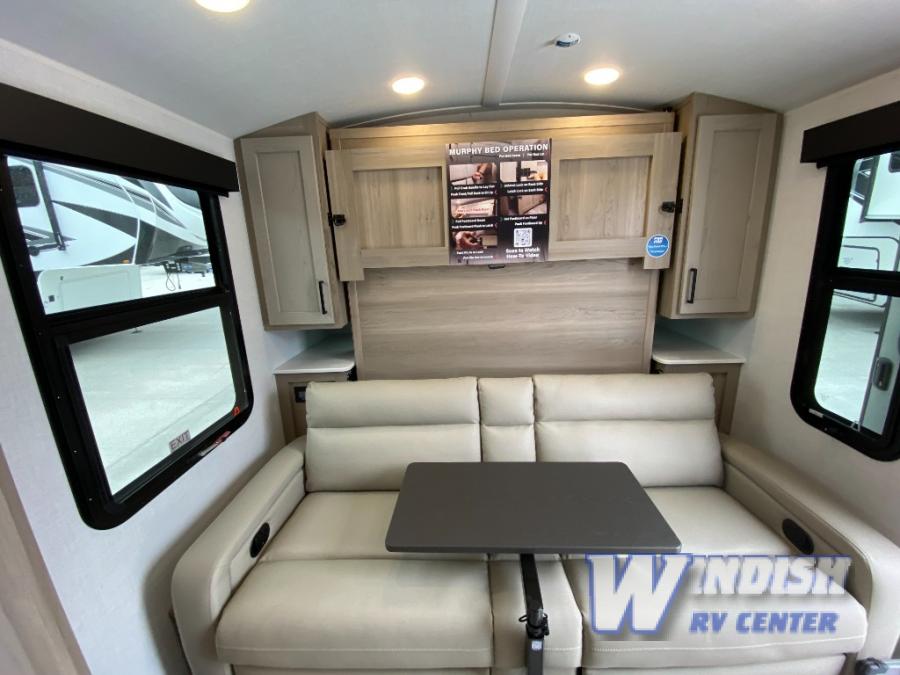 Pack your bags and head to your local state park in this travel trailer! You will love the extra space you have thanks to the kitchen slide out, and the jack knife sofa can fold away at night so you can sleep on the Murphy bed! This model includes a 32" 12V TV to keep you entertained on those rainy days, and the full bath will let you get cleaned up if you decide to hike despite the weather. There will be plenty of storage space for your belongings and gear since there is a pass-through storage and additional exterior storage, and don't overlook the exterior griddle for breakfast outdoors!