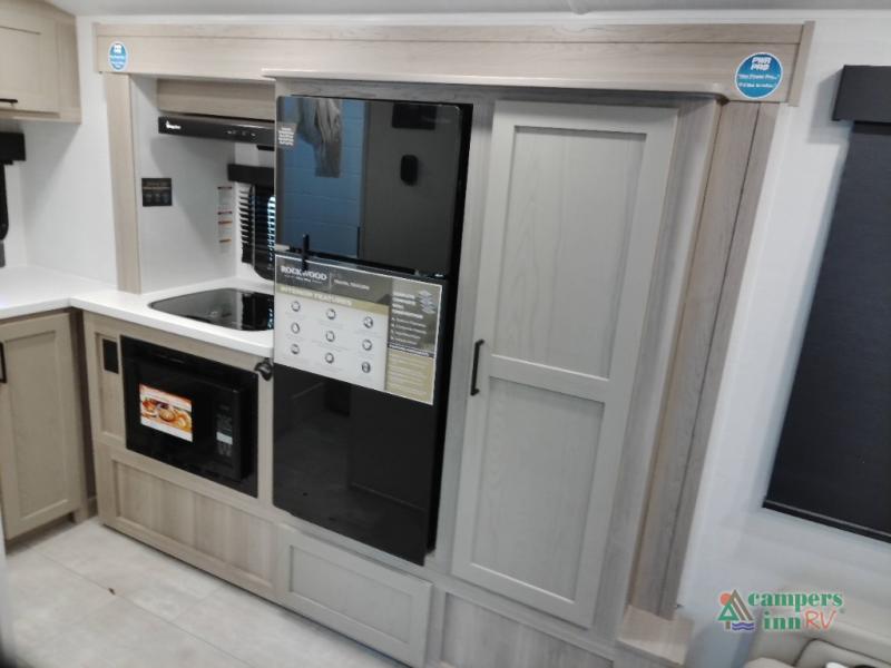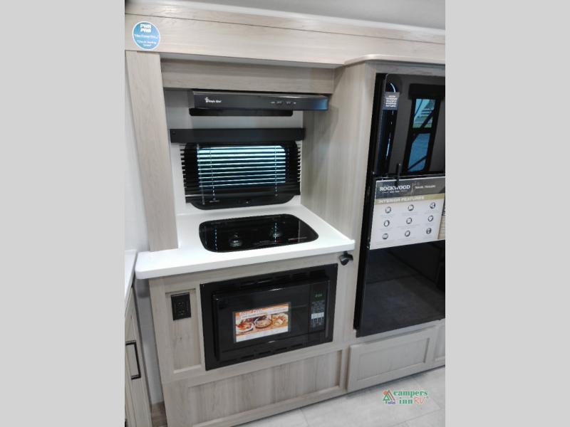 With any Rockwood GEO Pro travel trailer by Forest River you will enjoy easy towing, durable construction, and off-road capabilities with larger 15" tires and a lift kit! Each model is constructed with complete composite wall construction for added strength and durability, and the torsion axle, Rubber-Ryde suspension will make towing easier than ever. Inside, you'll find sleek roller shades for added privacy, a 12V refrigerator and a microwave, plus a 20,000 BTU furnace to keep you warm during the colder camping months.