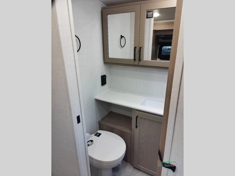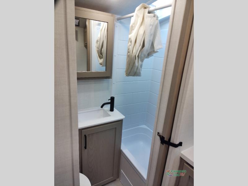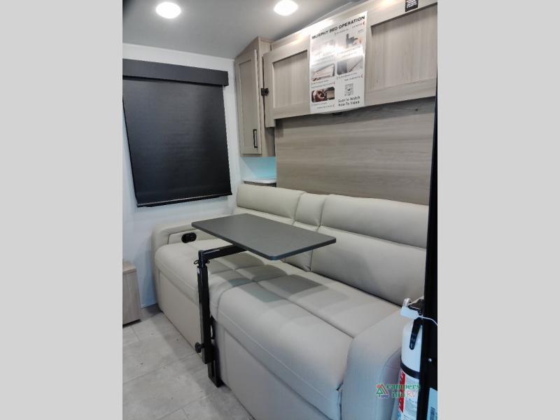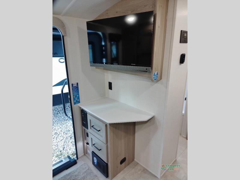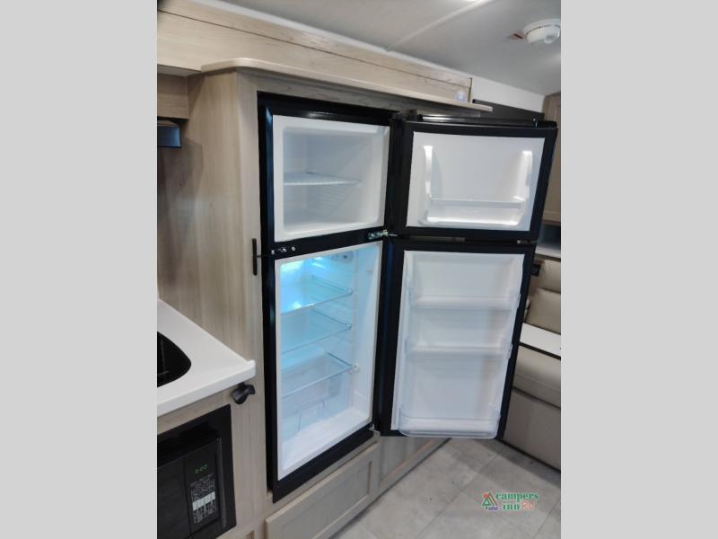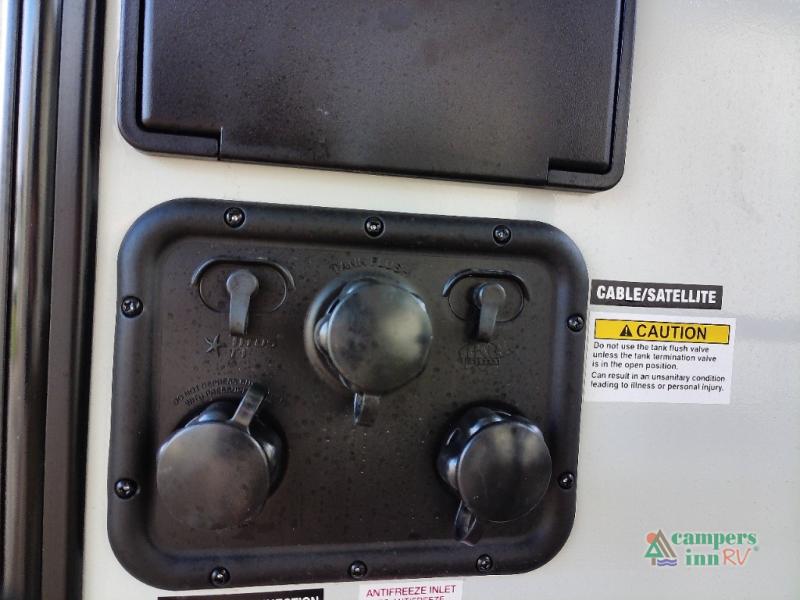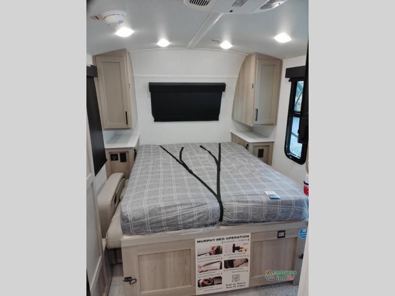 Pack your bags and head to your local state park in this travel trailer! You will love the extra space you have thanks to the kitchen slide out, and the jack knife sofa can fold away at night so you can sleep on the Murphy bed! This model includes a 32" 12V TV to keep you entertained on those rainy days, and the full bath will let you get cleaned up if you decide to hike despite the weather. There will be plenty of storage space for your belongings and gear since there is a pass-through storage and additional exterior storage, and don't overlook the exterior griddle for breakfast outdoors!