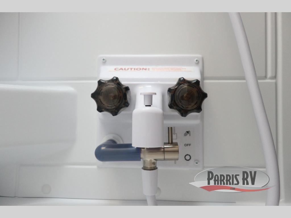 Pack your bags and head to your local state park in this travel trailer! You will love the extra space you have thanks to the kitchen slide out, and the jack knife sofa can fold away at night so you can sleep on the Murphy bed! This model includes a 32" 12V TV to keep you entertained on those rainy days, and the full bath will let you get cleaned up if you decide to hike despite the weather. There will be plenty of storage space for your belongings and gear since there is a pass-through storage and additional exterior storage, and don't overlook the exterior griddle for breakfast outdoors!