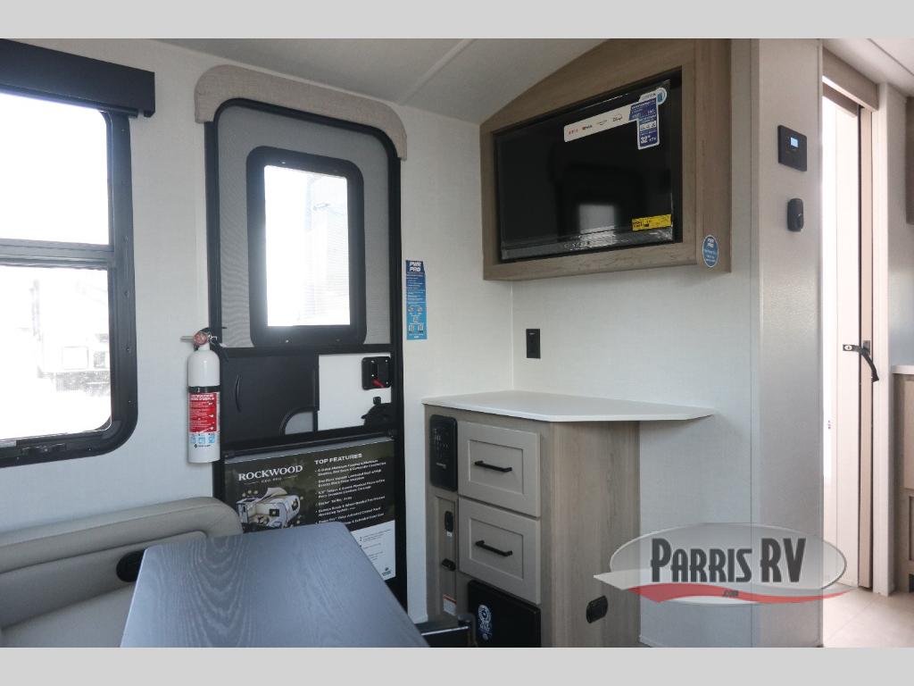 With any Rockwood GEO Pro travel trailer by Forest River you will enjoy easy towing, durable construction, and off-road capabilities with larger 15" tires and a lift kit! Each model is constructed with complete composite wall construction for added strength and durability, and the torsion axle, Rubber-Ryde suspension will make towing easier than ever. Inside, you'll find sleek roller shades for added privacy, a 12V refrigerator and a microwave, plus a 20,000 BTU furnace to keep you warm during the colder camping months.